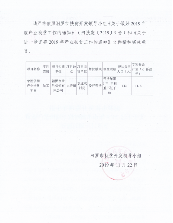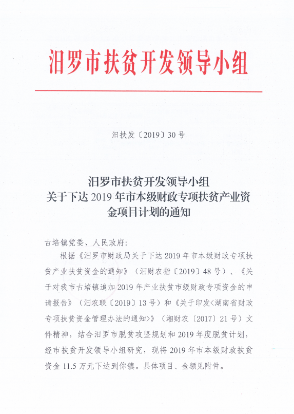 关于下达2019年市本级财政专项扶贫产业资金项目计划的通知