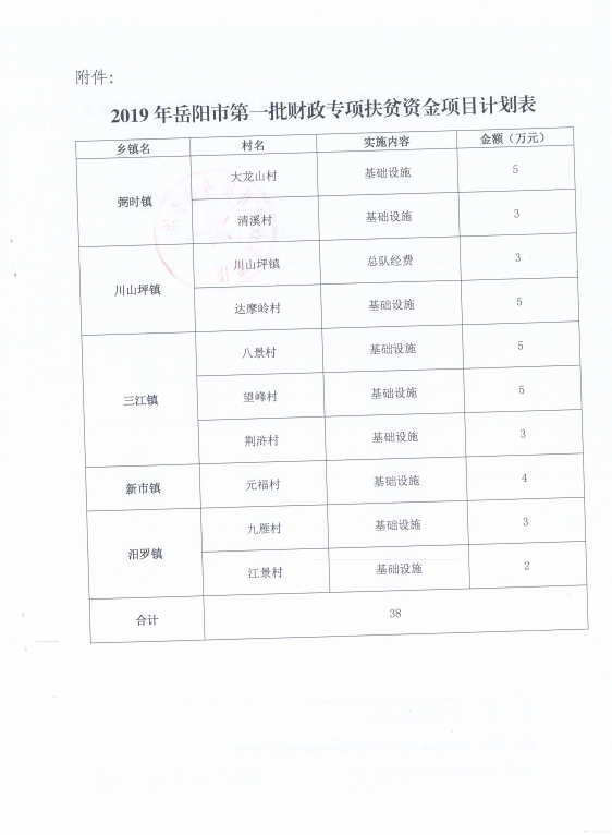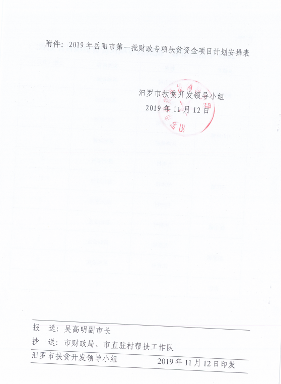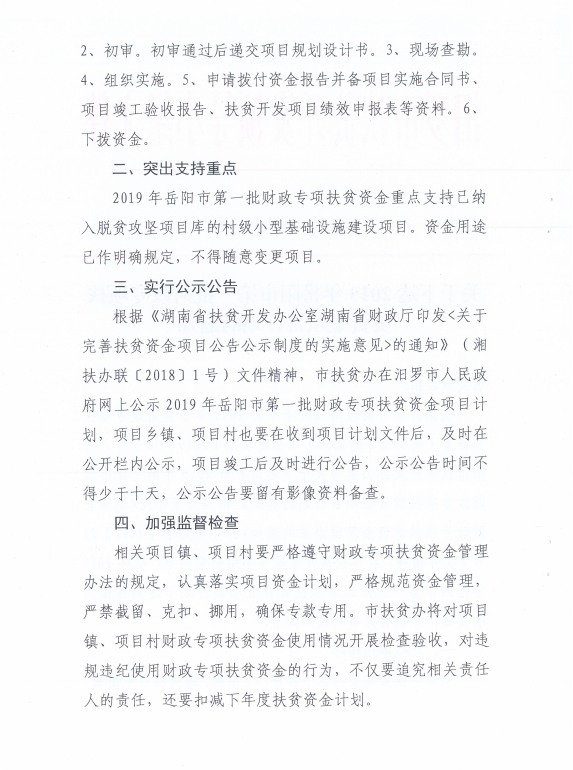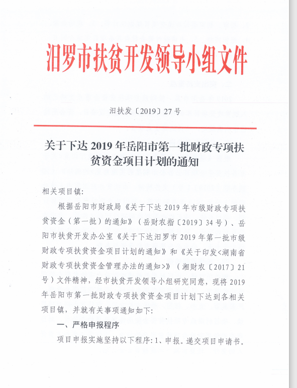 关于下达2019年岳阳市第一批财政专项扶贫资金项目计划的通知