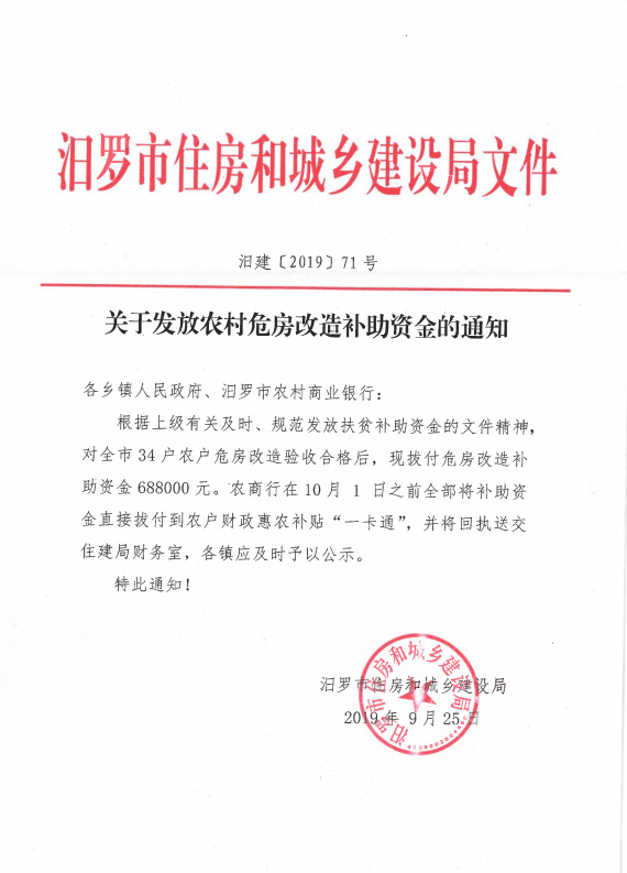 关于发放农村危房改造补助资金的通知(第二批)