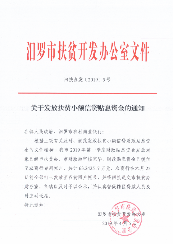 关于发放扶贫小额信贷贴息资金的通知(第一批)