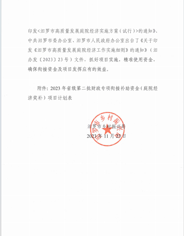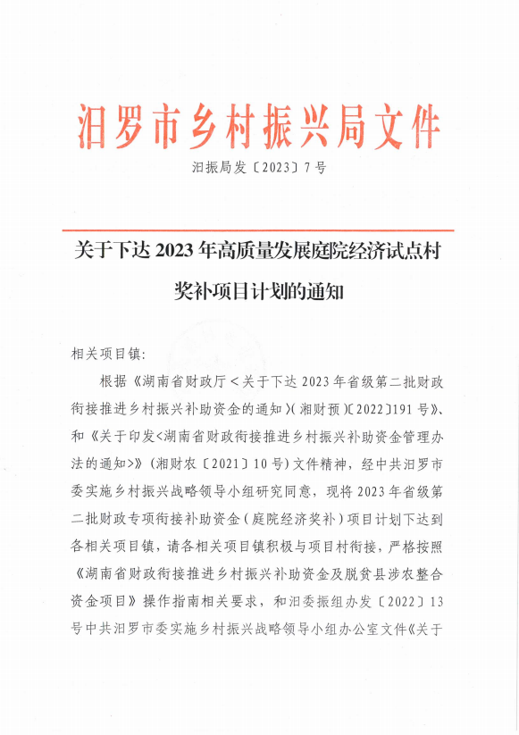 关于下达2023年高质量发展庭院经济试点村奖补项目计划的通知