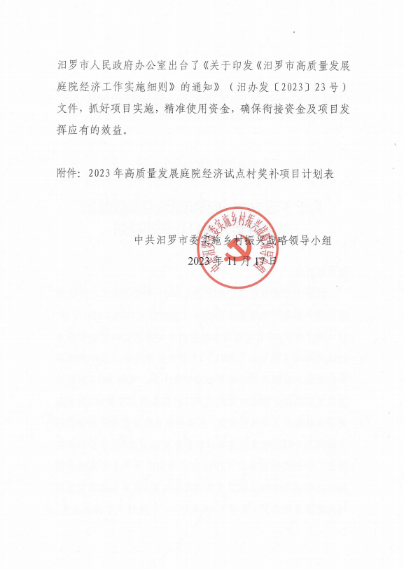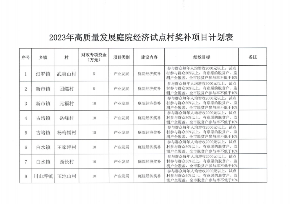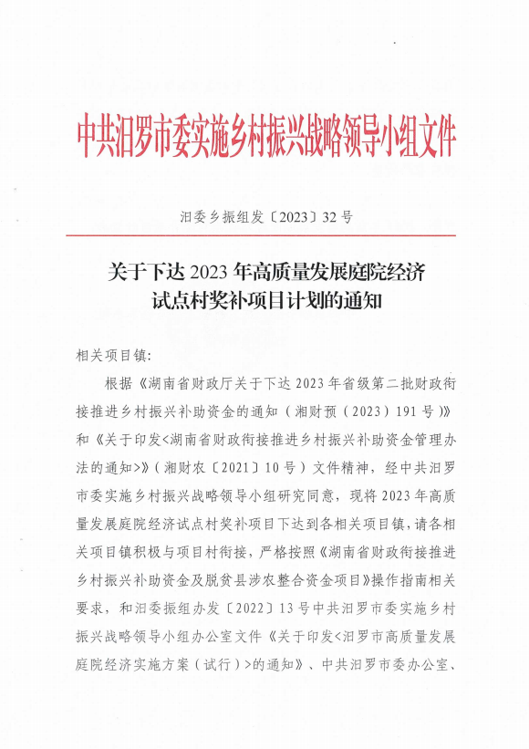 关于下达2023年高质量发展庭院经济试点村奖补项目计划的通知