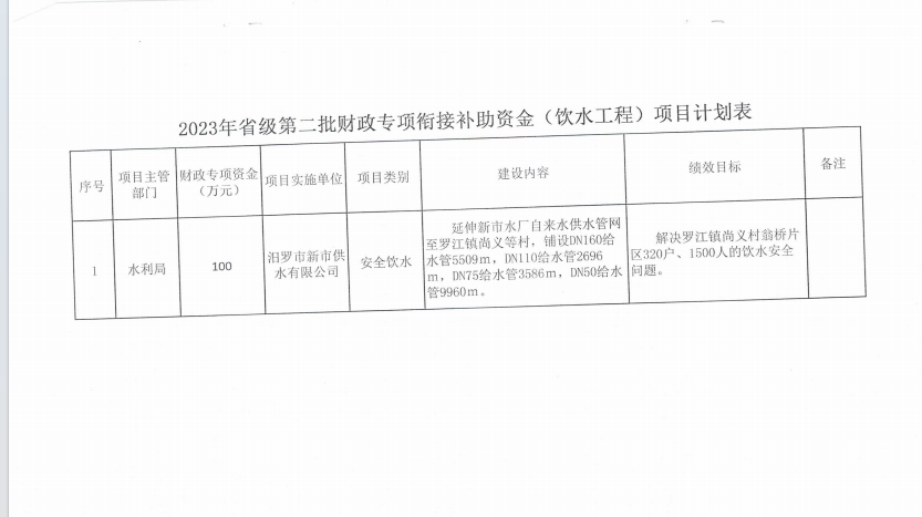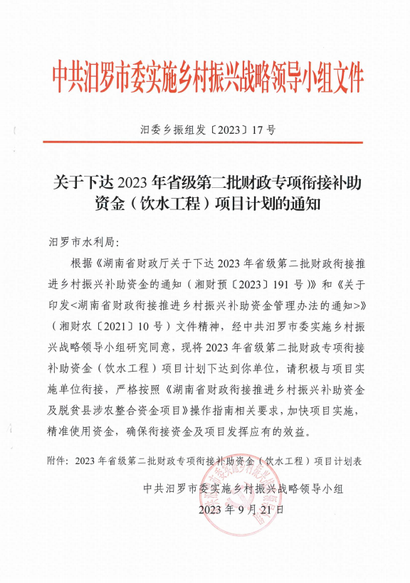 关于下达2023年省级第二批财政专项衔接补助资金(饮水工程)项目计划的通知