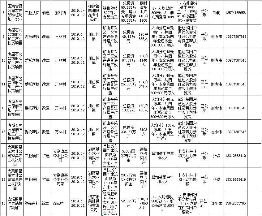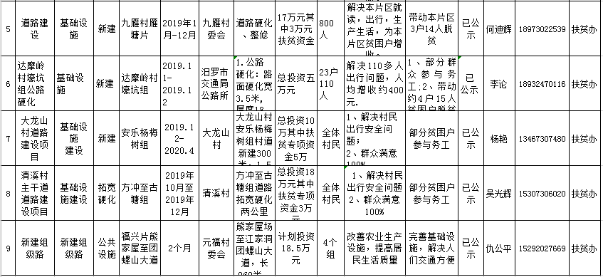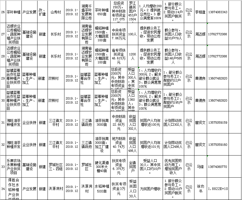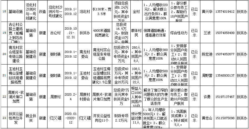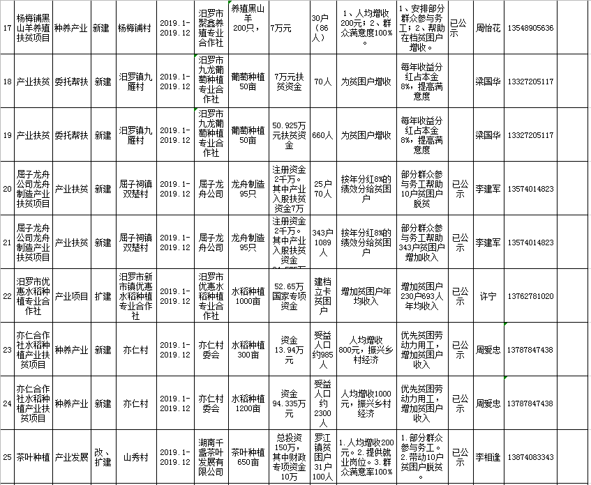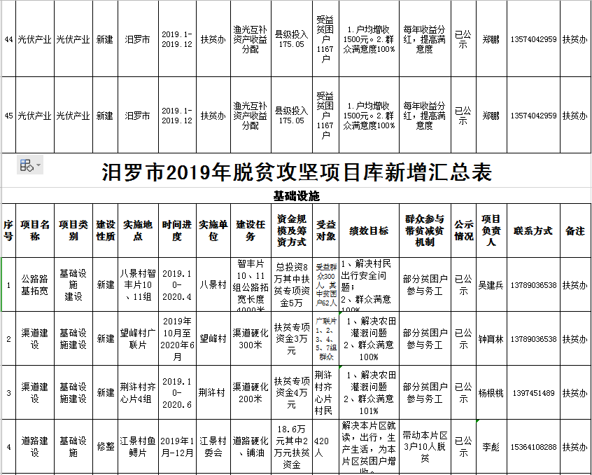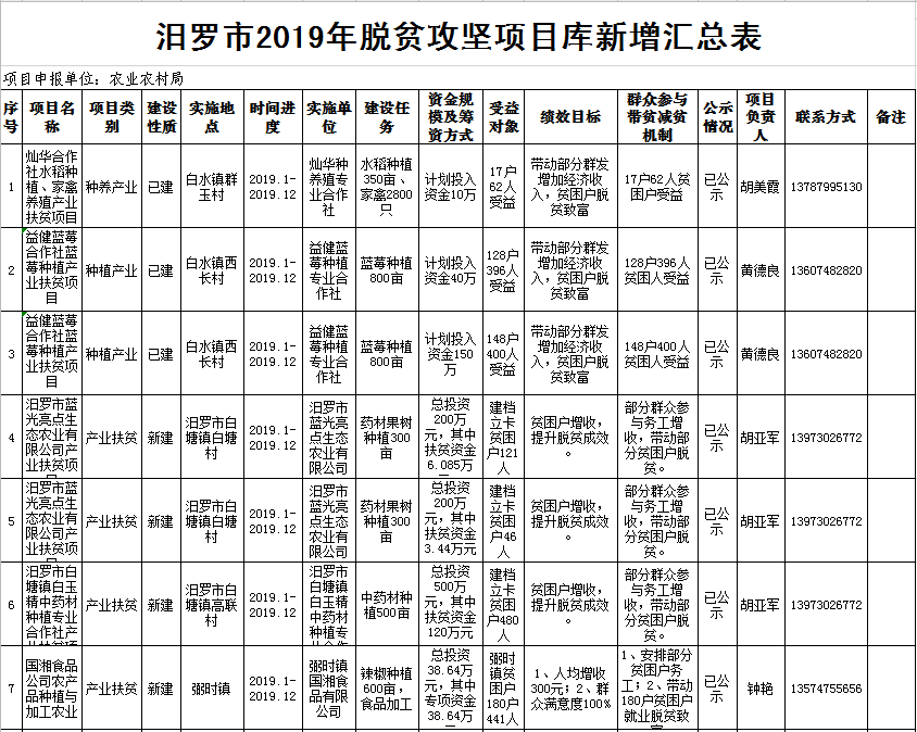 汨罗市2019年脱贫攻坚项目库新增汇总表