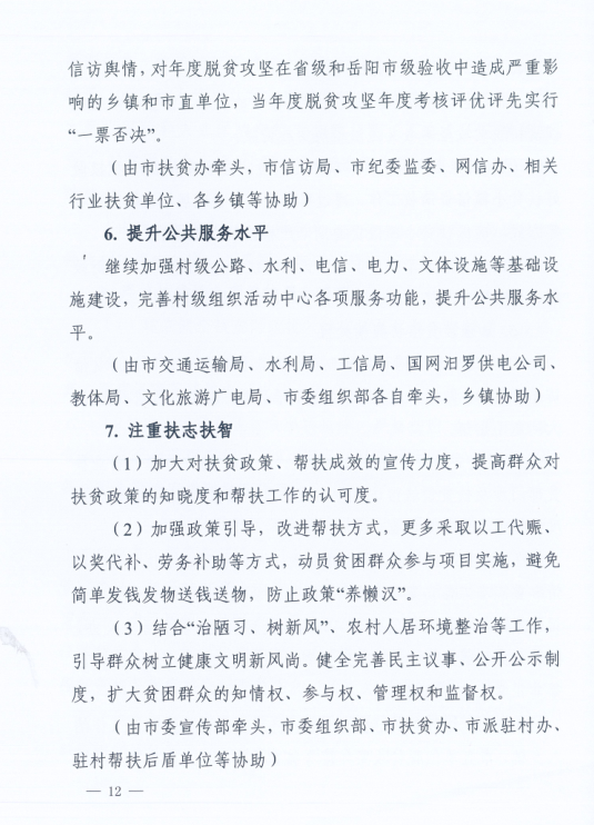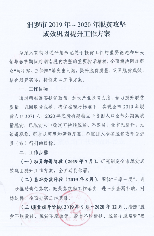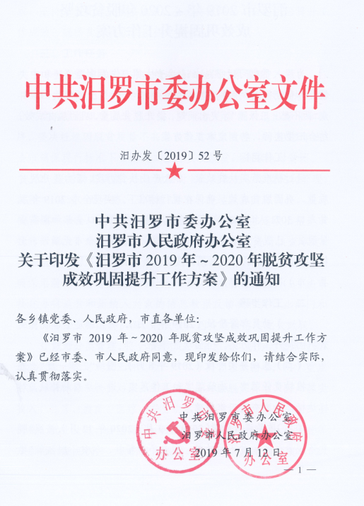 汨罗市2019-2020年脱贫攻坚成效巩固提升工作方案