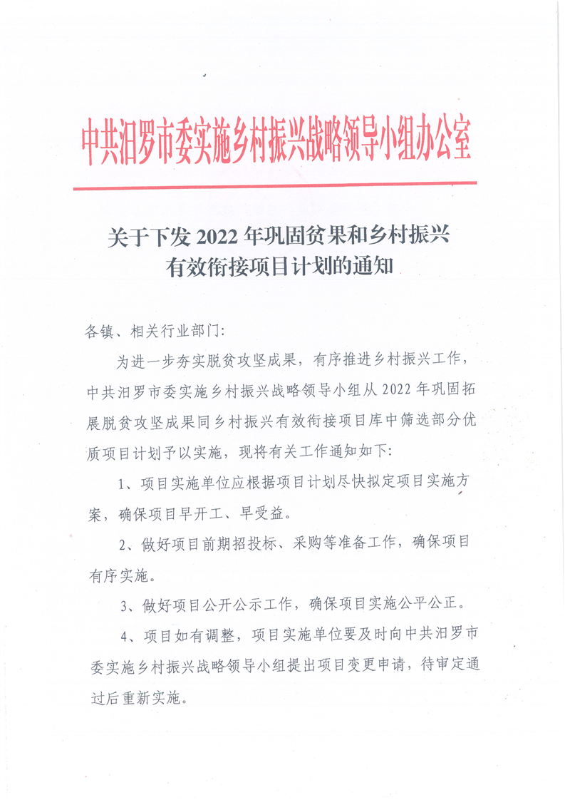 关于下发2022年巩固脱贫攻坚成果和乡村振兴有效衔接项目计划的通知