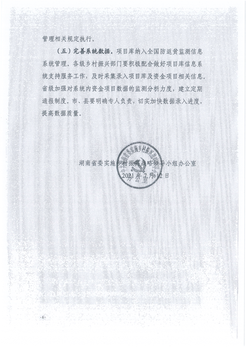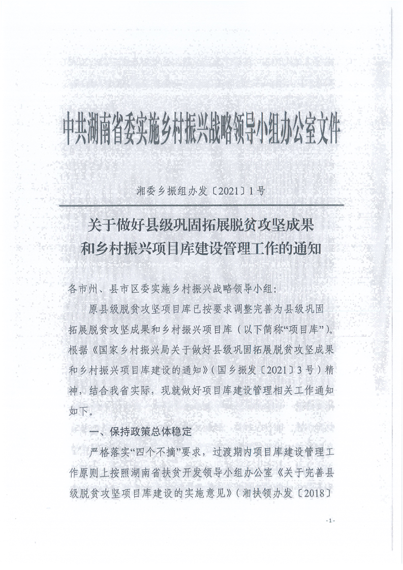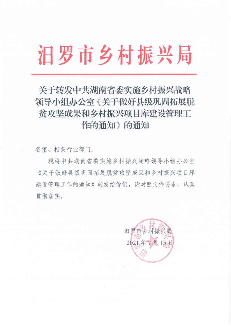 关于转发中共湖南省委实施乡村战略领导小组办公室《关于做好县级巩固拓展脱贫攻坚成果和乡村振兴项目库建设管理工作的通知》