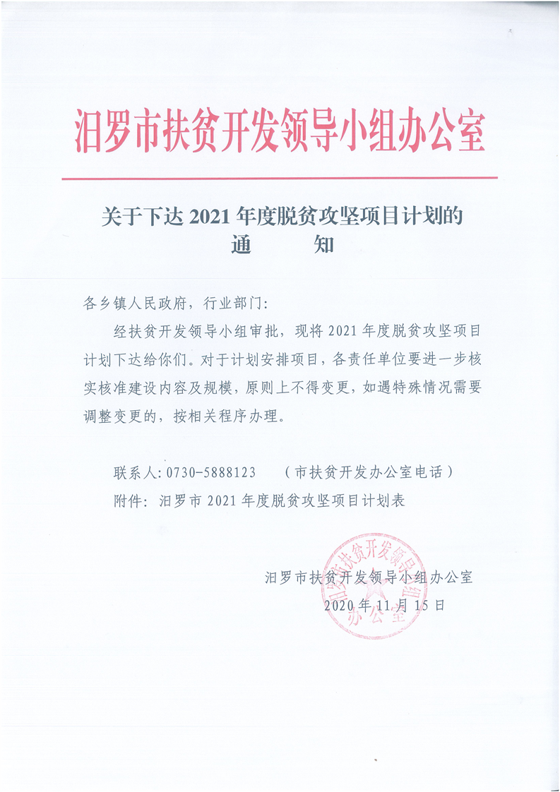 关于下达2021年度脱贫攻坚项目计划的通知
