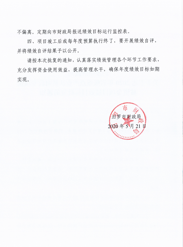 由我单位负责组织实施的2020年省级重点产业扶贫财政专项扶贫资金项目绩效目标已经市财政部门批复《汨罗市财政局关于下达2020年省级重点产业扶贫财政专项扶贫资金财政衔接推进乡村振兴补助资金绩效目标批复的通知》,根据绩效管理工作要求,现将批复后的绩效目标予以公开。