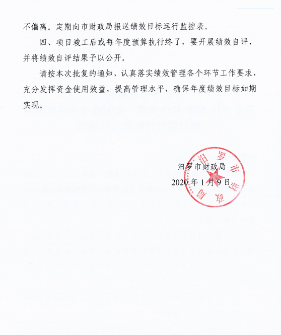 由我单位负责组织实施的2020年中央第一批财政专项扶贫资金项目绩效目标已经市财政部门批复《汨罗市财政局关于下达2020年中央第一批财政专项扶贫资金财政衔接推进乡村振兴补助资金绩效目标批复的通知》,根据绩效管理工作要求,现将批复后的绩效目标予以公开。