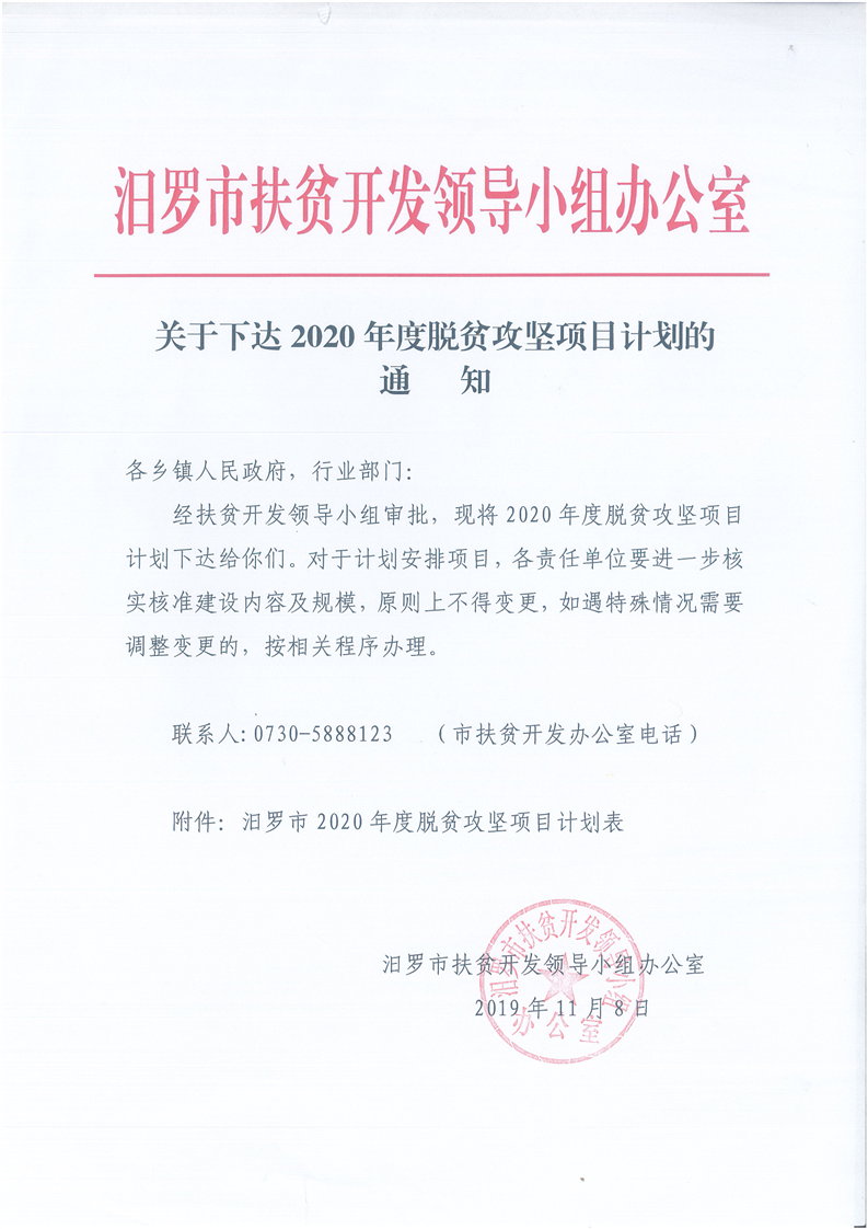 关于下达2020年度脱贫攻坚项目计划的通知