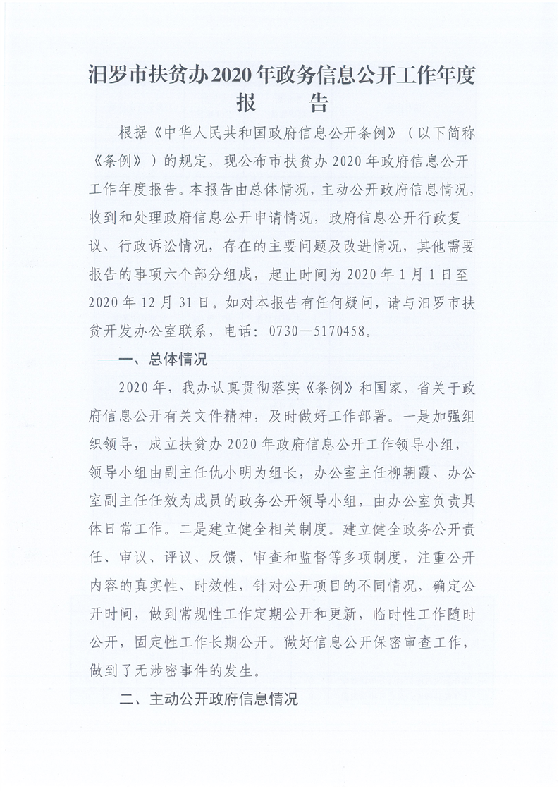 市扶贫办2020年政务信息公开年报
