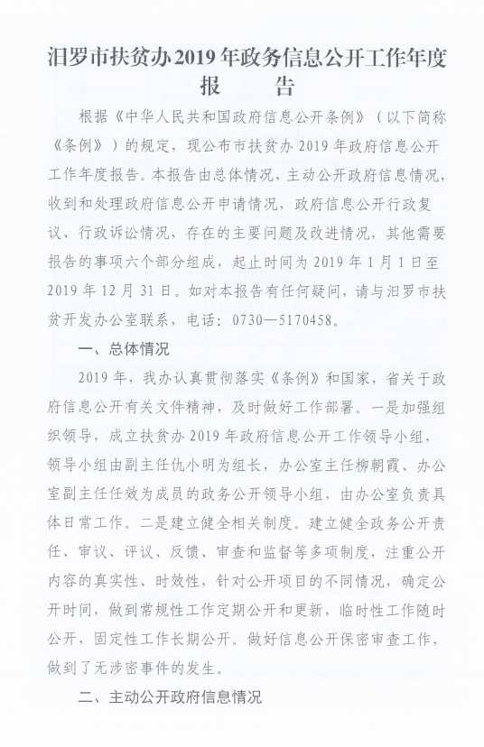 汨罗市扶贫办2019年政务信息公开工作年度报告