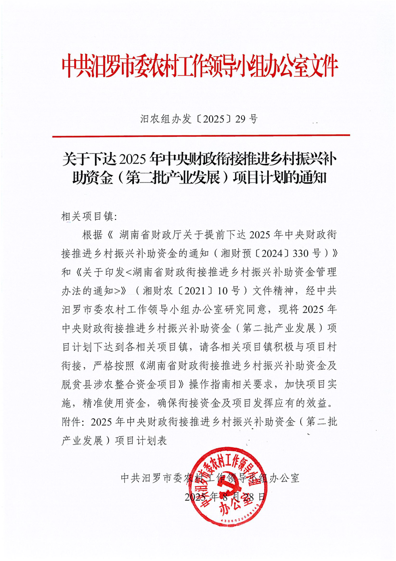 关于下达2025年中央财政衔接推进乡村振兴 补助资金(第二批产业发展)项目计划的通知