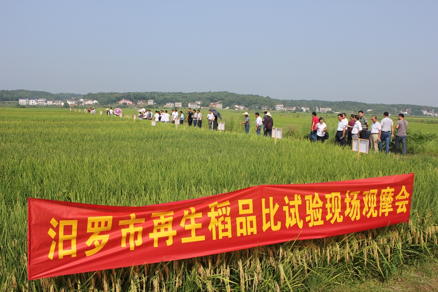 8月3日,汨罗召开再生稻示范现场观摩会。会议邀请了省农技推广总站刘登魁副站长,湖南农业大学唐启源教授,岳阳市农业委党组成员黄泽根等领导、专家出席,全市15个乡镇农技站站长、第一联乡责任人、相关技术人员及种粮大户共60余人参会。