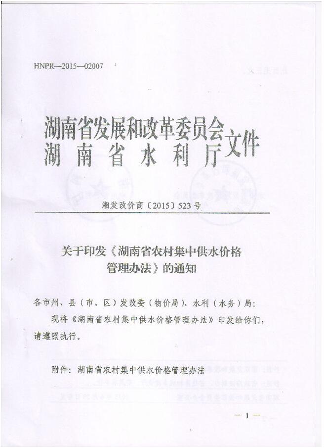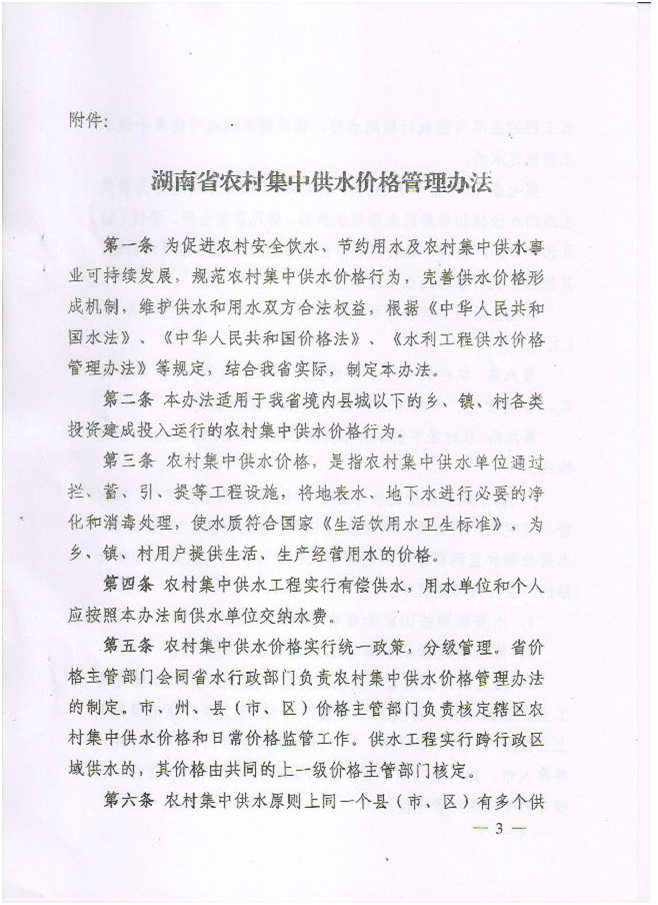 湖南省农村集中供水价格管理办法