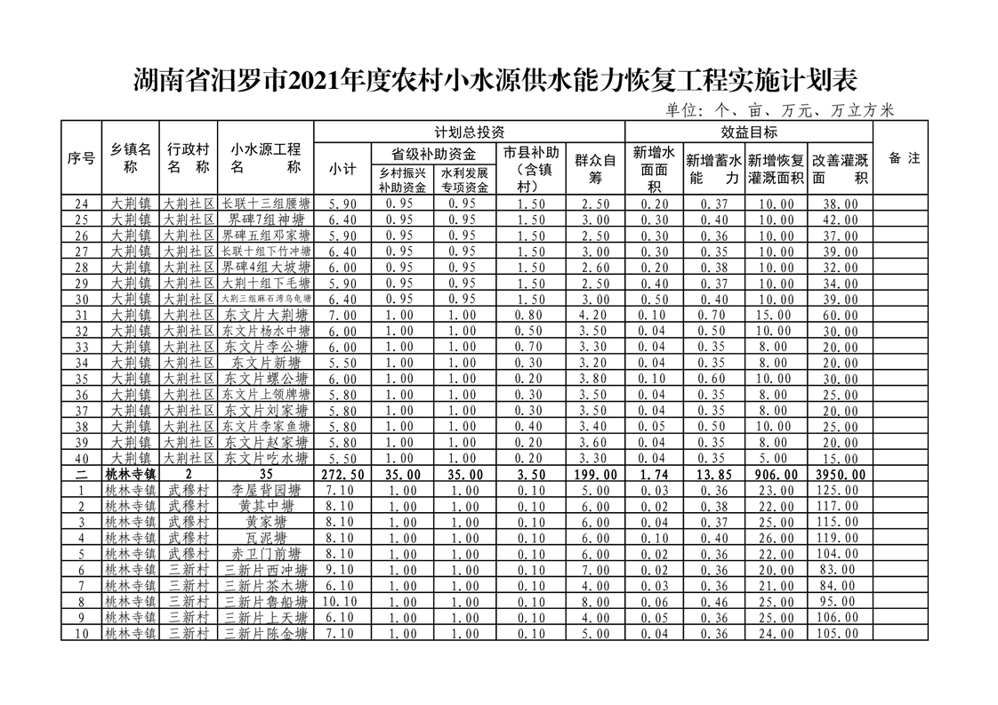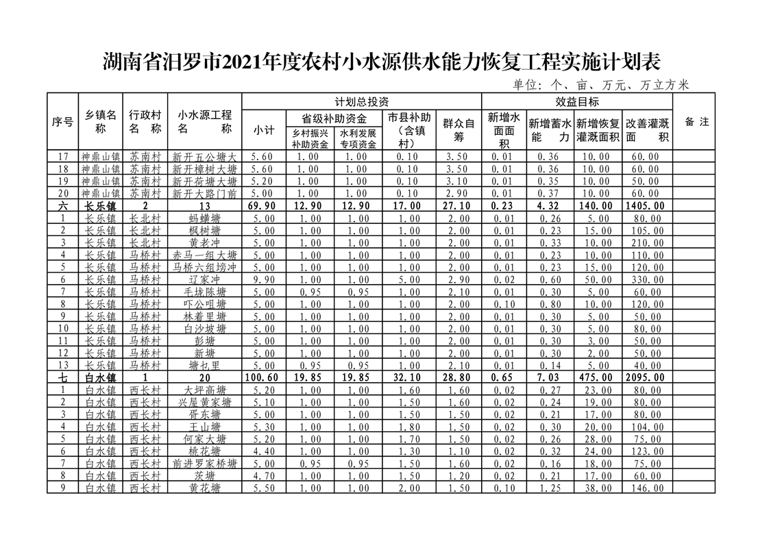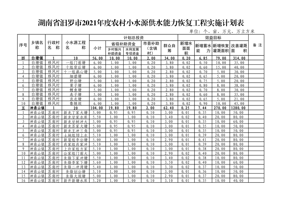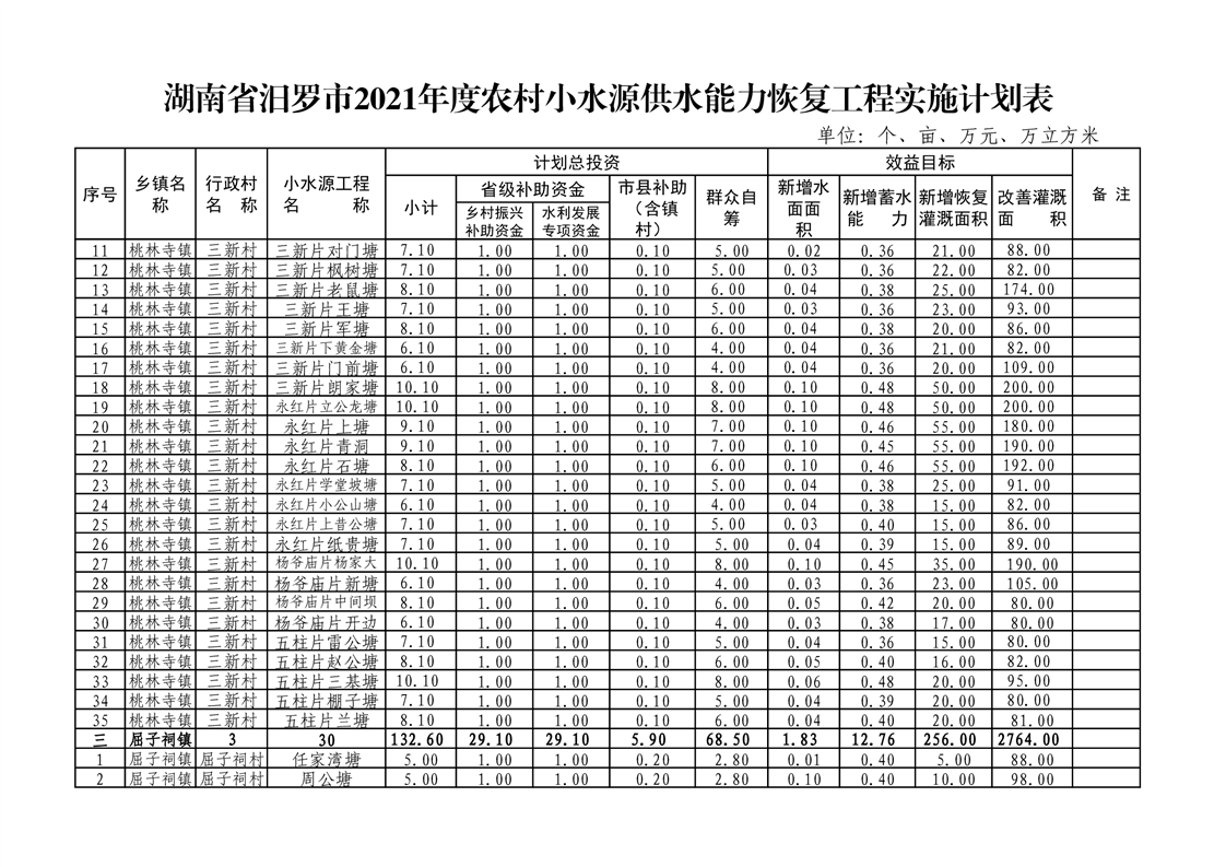 关于下达汨罗市2021年度农村小水源供水能力恢复项目实施计划的通知