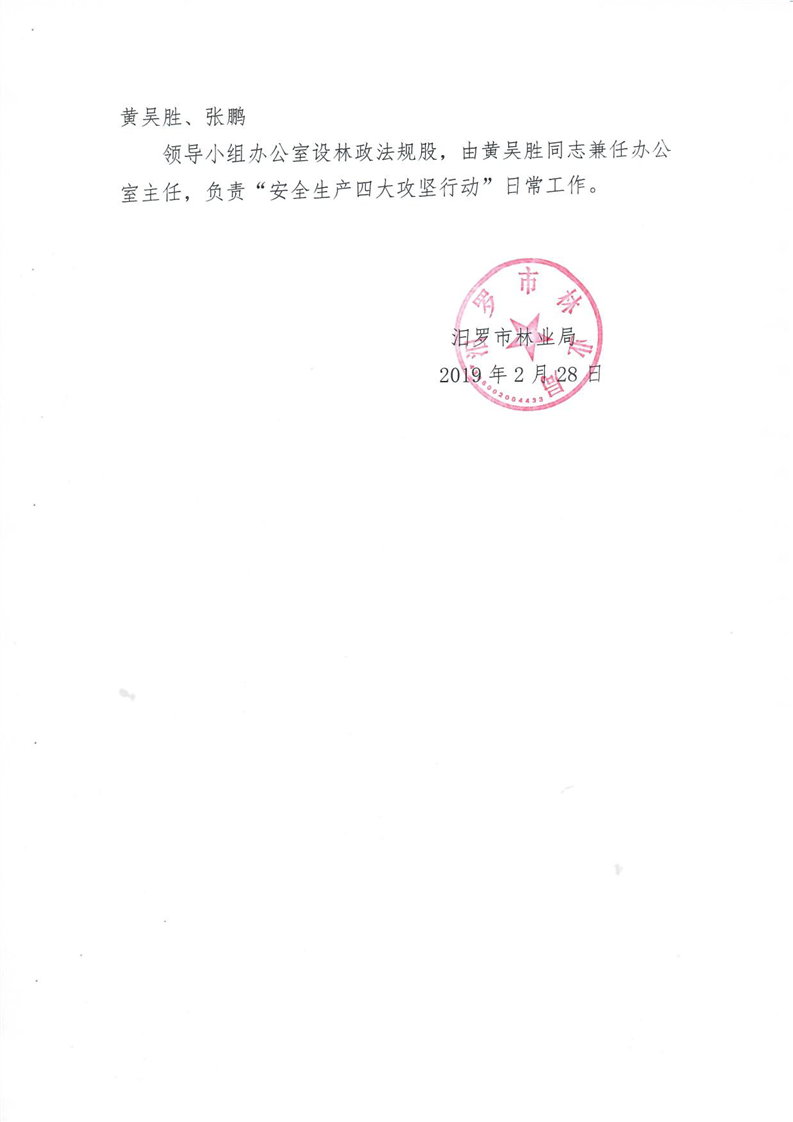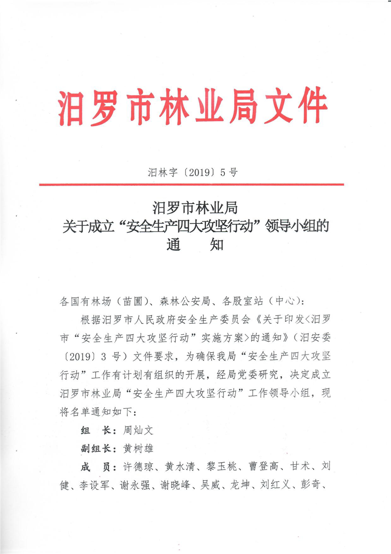 汨罗市林业局关于成立“安全生产四大攻坚行动”领导小组的通知