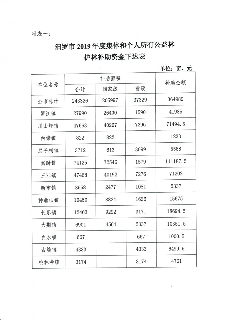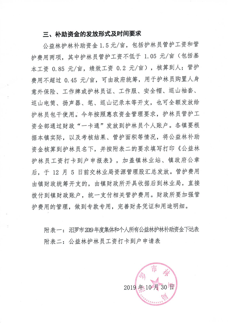 关于支付2019年度集体和个人所有公益林护林补助资金的通知