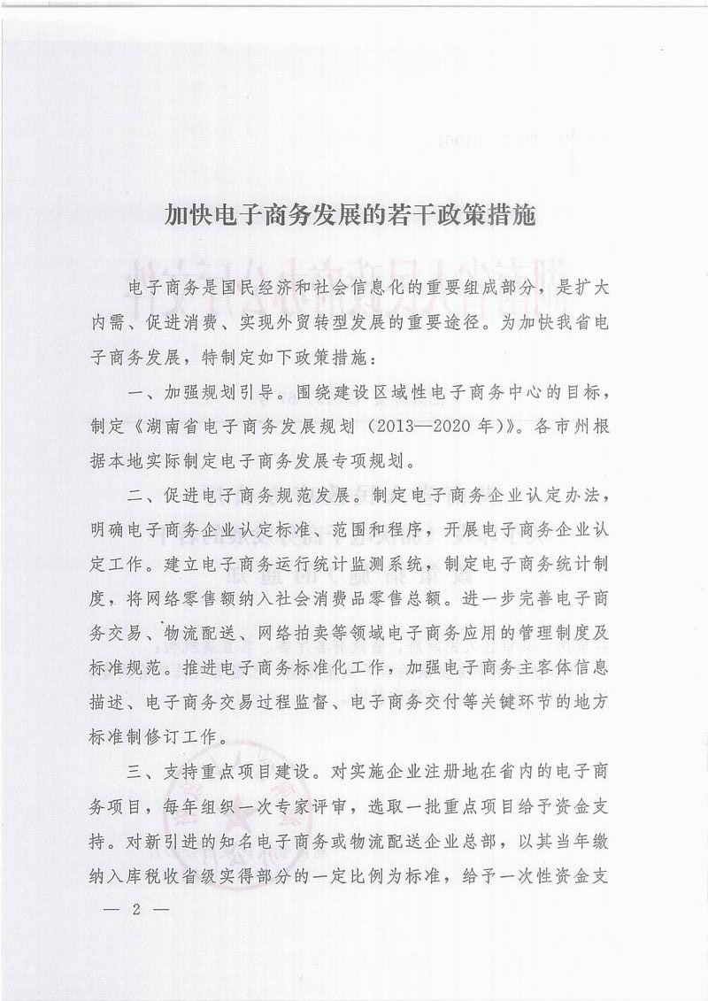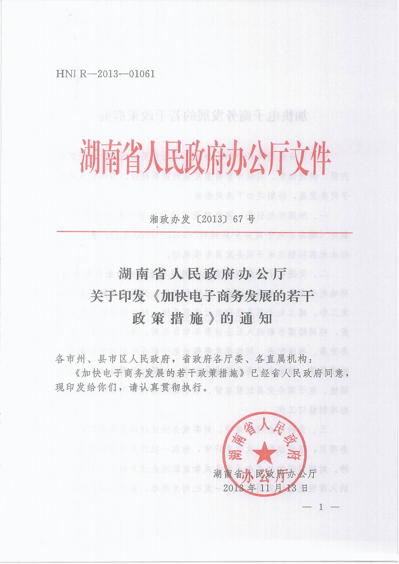 湖南省人民政府办公厅关于印发《加快电子商务发展的若干政策措施》的通知