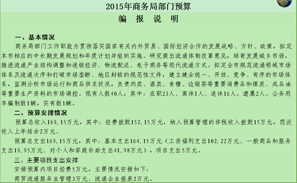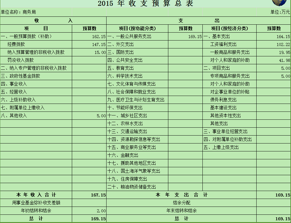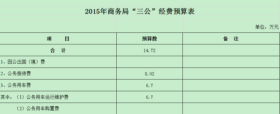 2015年汨罗市商务局收支预算总表和“三公”经费预算公开表