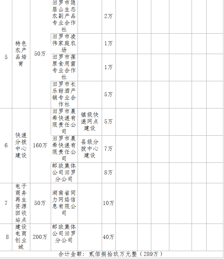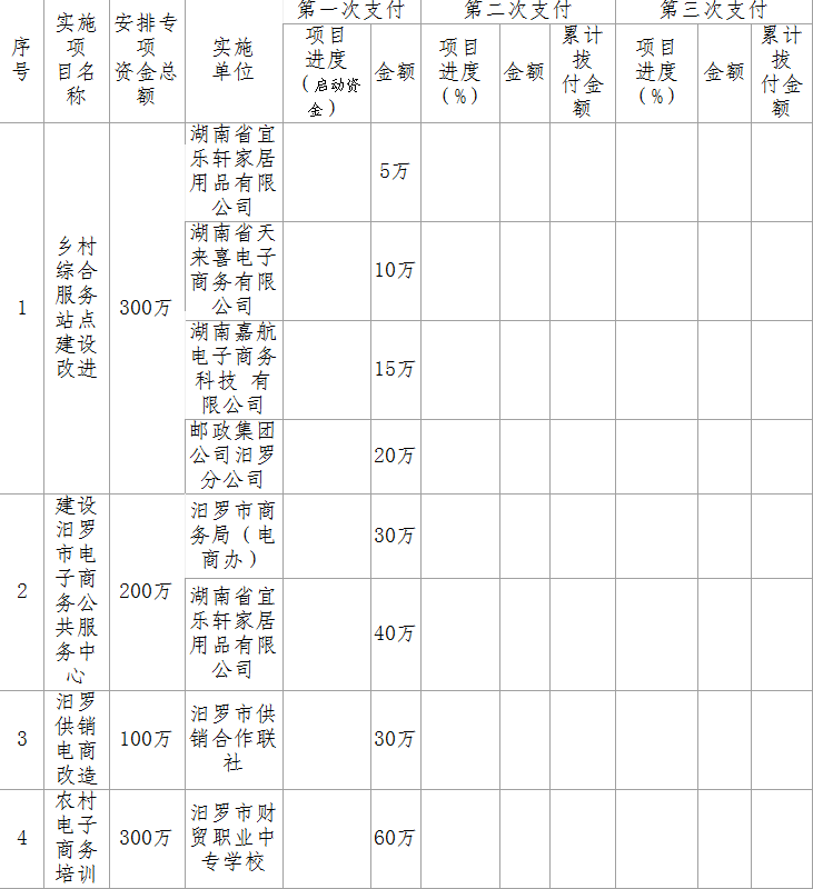 汨罗市电子商务进农村专项资金第一次支付明细公示