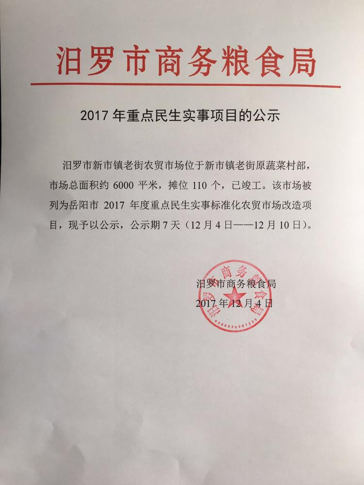 汨罗市商务粮食局2017年度重点民生实事项目公示
