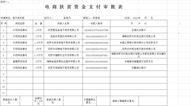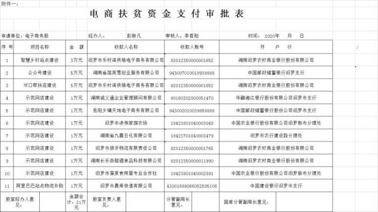 附件:2020年第一批汨罗市电商扶贫专项资金计划安排表