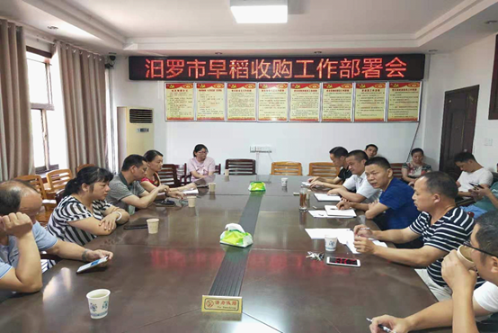 8月1日上午,汨罗市商务粮食局会同财政局、农发行、直属库等相关部门召开2019年度早稻收购工作部署会,会上,商务粮食局王哲局长传达了上级相关文件和会议精神,分析了我市早稻收购形势,明确了各相关部门责任分工,确保早稻收购工作有序开展。