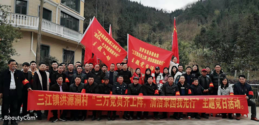我市“三万党员齐上阵,清洁家园我先行”主题党员活动日在全市上下掀起了村庄清洁志愿服务热潮。3月4日下午,市商务粮食局30余名党员领导干部来到扶贫联点村三江镇洪源洞村,与该村的党员们一道进行村庄清洁集中攻坚行动。