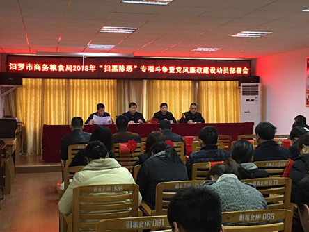 3月7日,市商务粮食局召开了扫黑除恶专题会议。 会议认真学习了汨罗市扫黑除恶专题会议精神。会议指出,要深入学习贯彻习近平总书记关于开展扫黑除恶专项斗争的重要指示精神,以及中央、省市县委相关部署,加强组织领导,统筹协调配合,切实把扫黑除恶攻坚战重大政治责任落地落实落细。会议要求,全局要提高政治站位,拿出具体方案,成立领导小组,以高度的政治责任感和历史使命感,坚决打赢扫黑除恶专项斗争这场硬仗,不断增强人民群众获得感、幸福感、安全感。