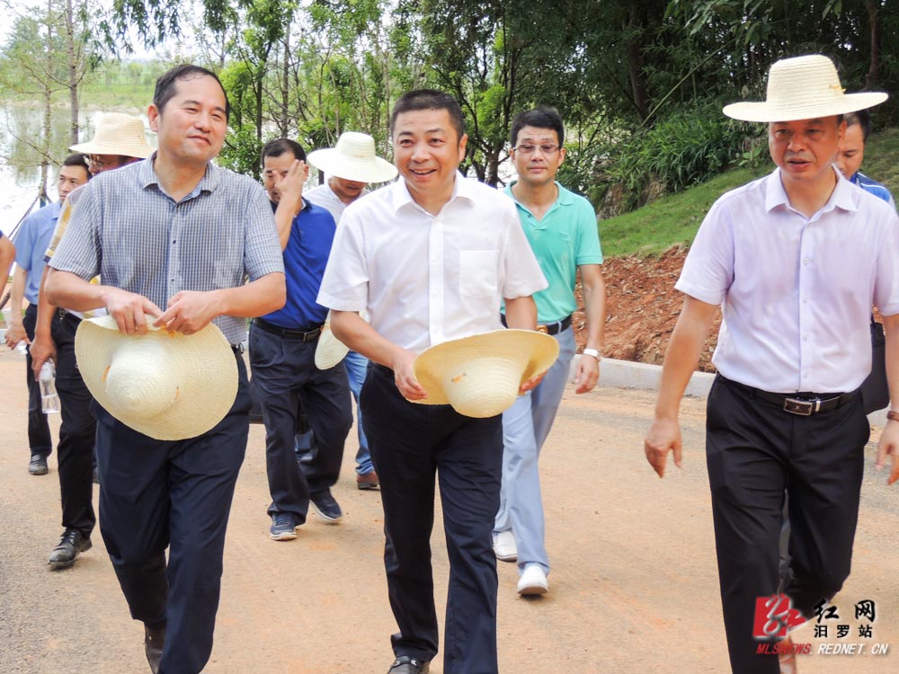 朱平波(中)、彭千红(左)、仇正勇(右)等现场查看屈子文化园建设情况