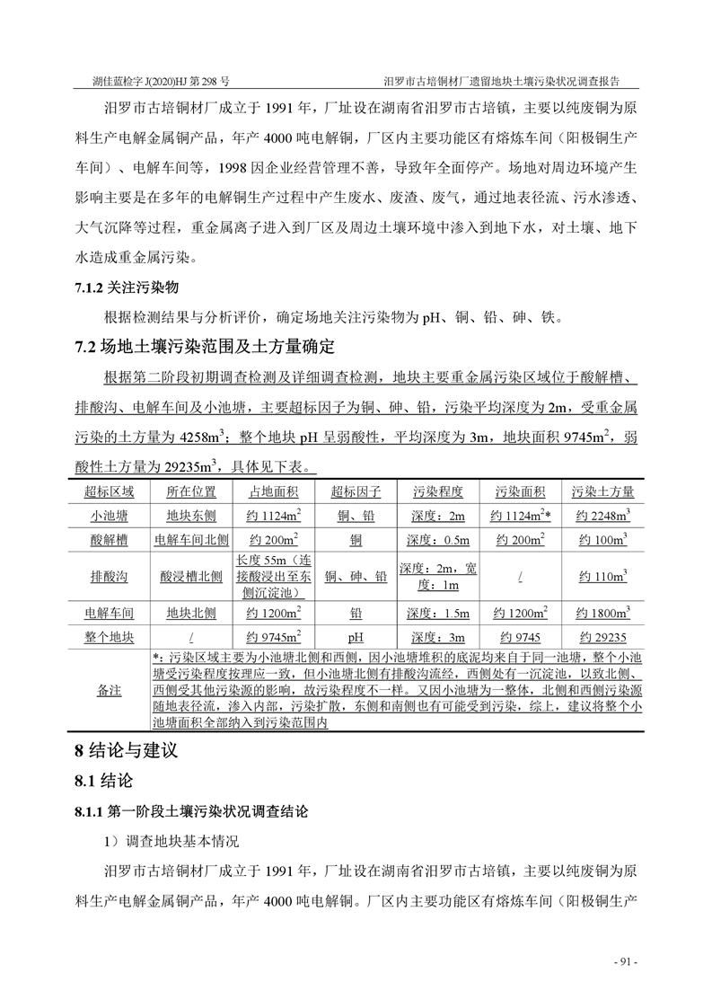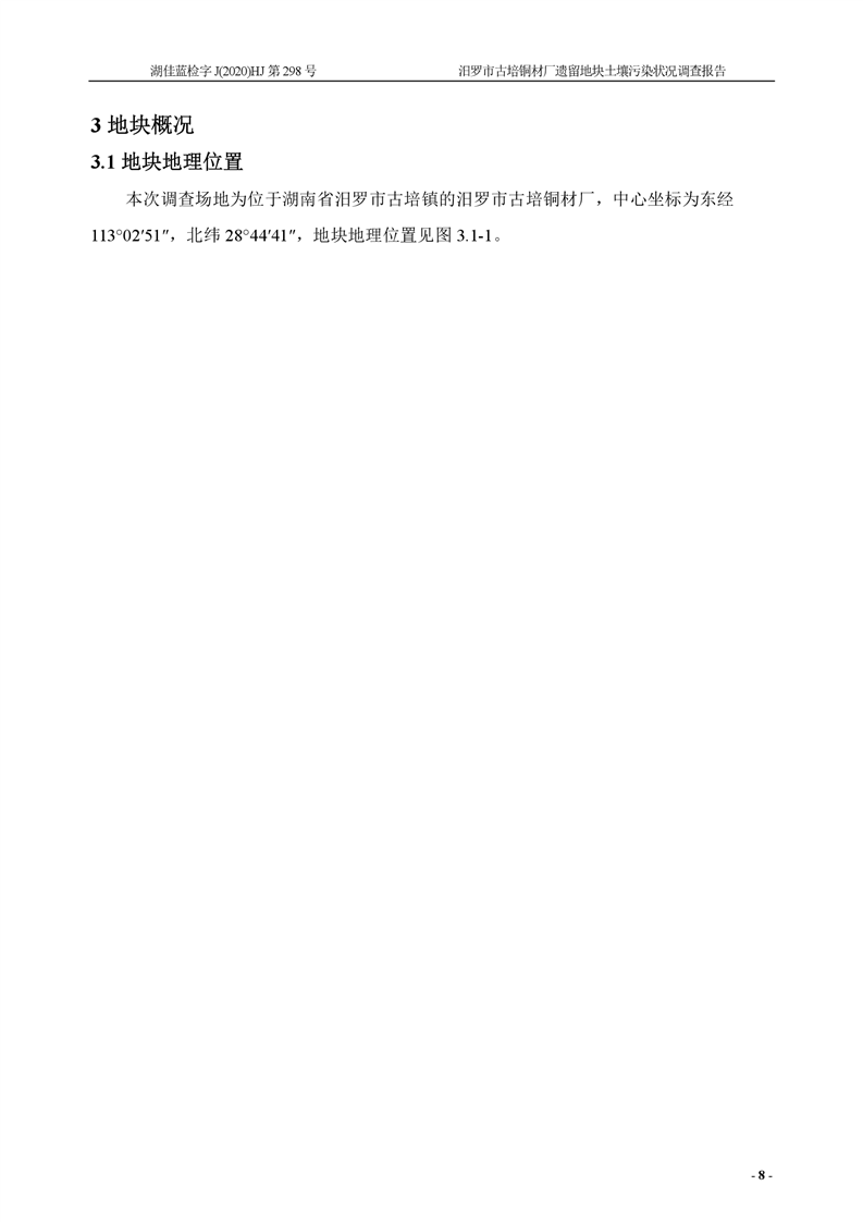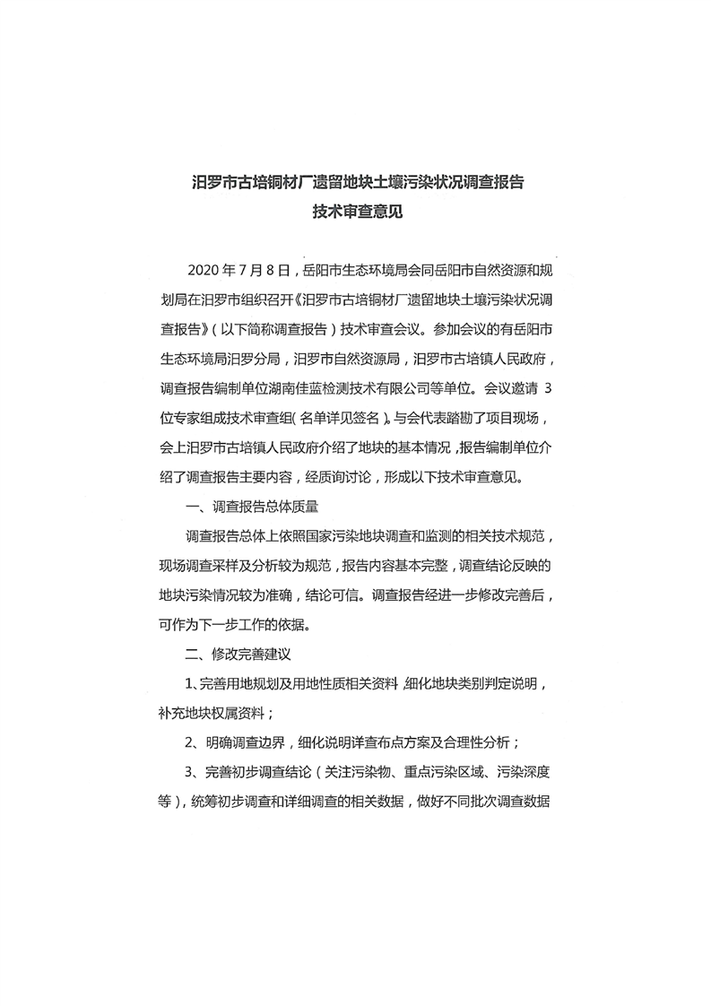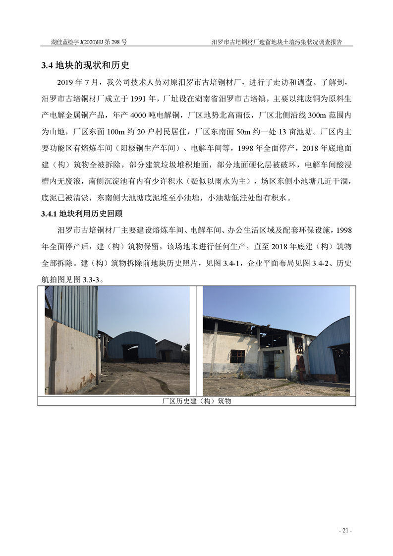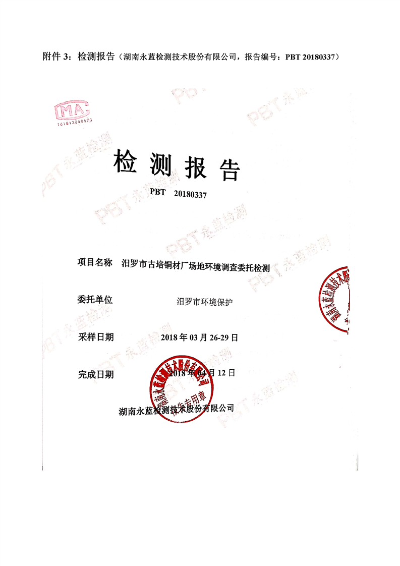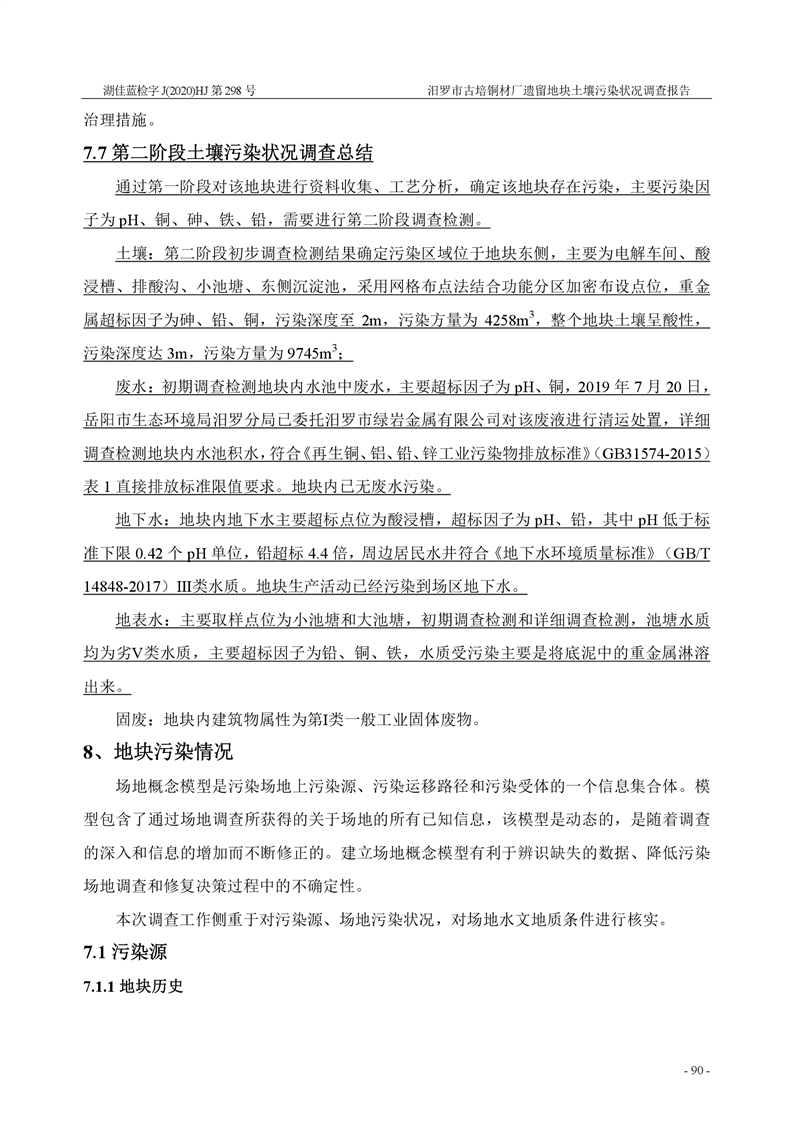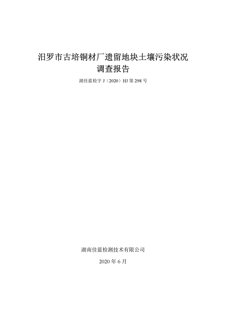 汨罗市古培铜材厂遗留地块土壤污染状况调查报告