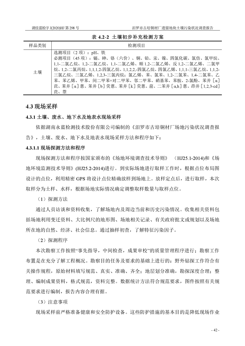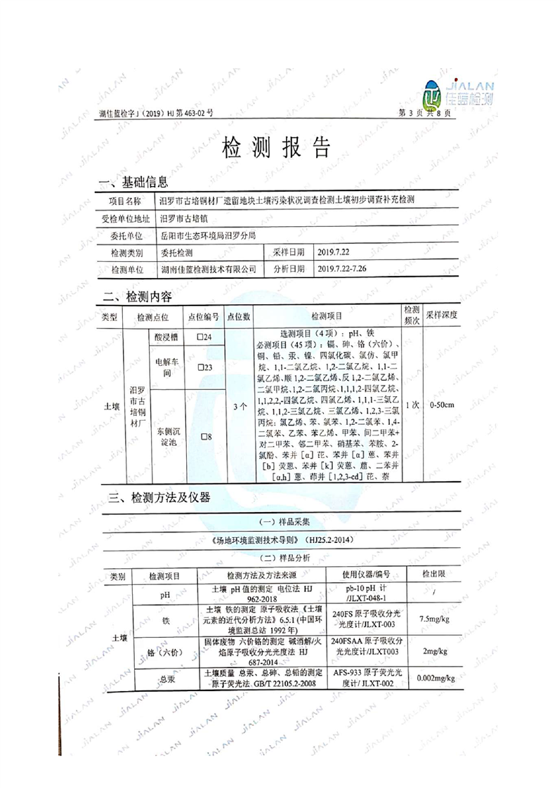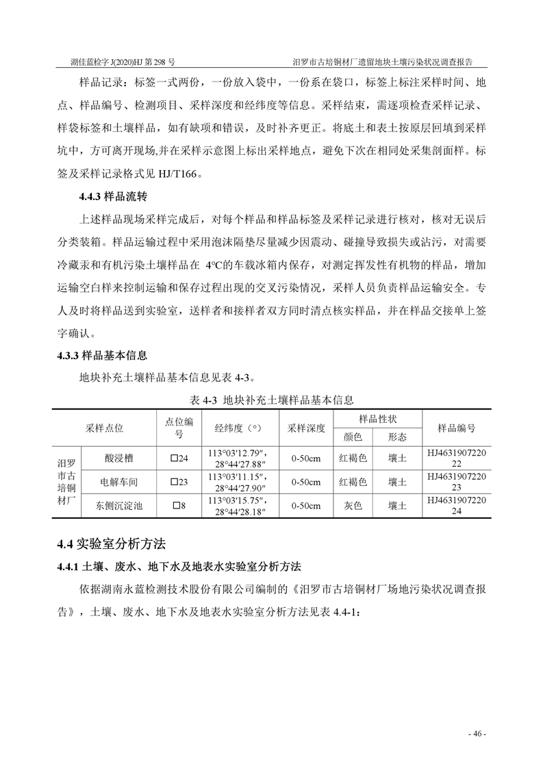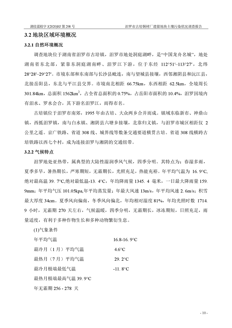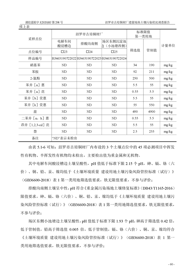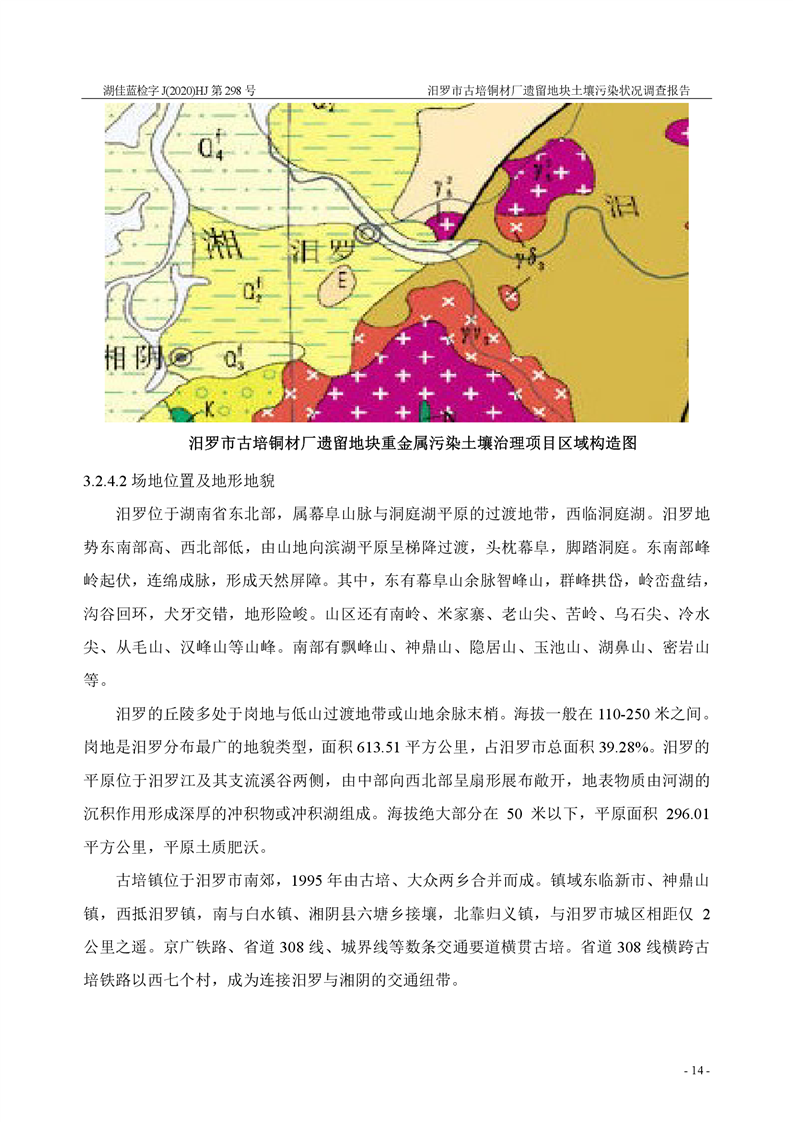 汨罗市古培铜材厂遗留地块土壤污染状况调查报告