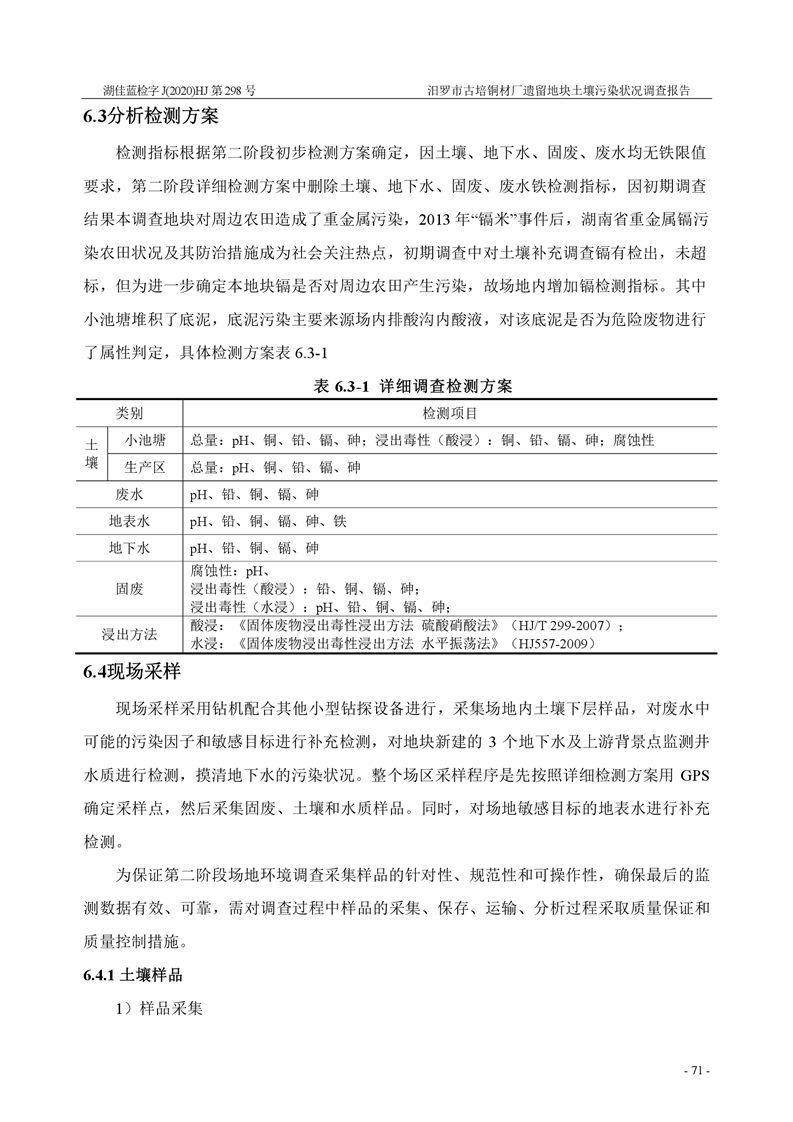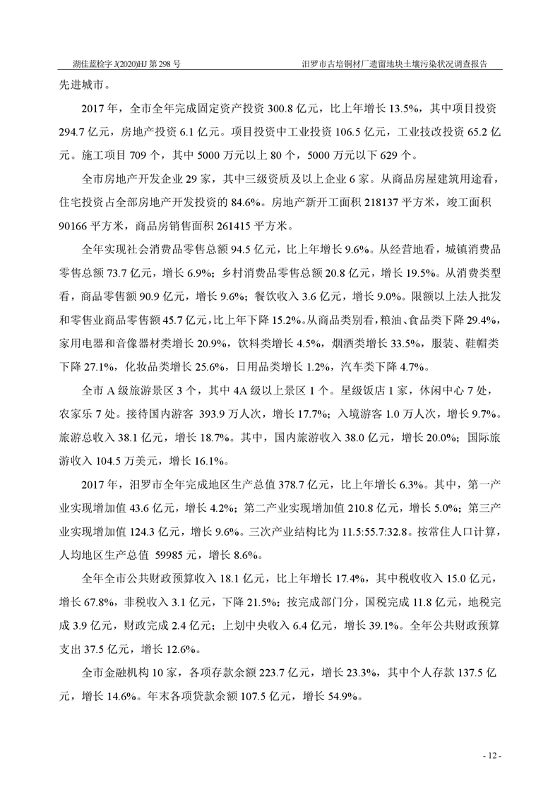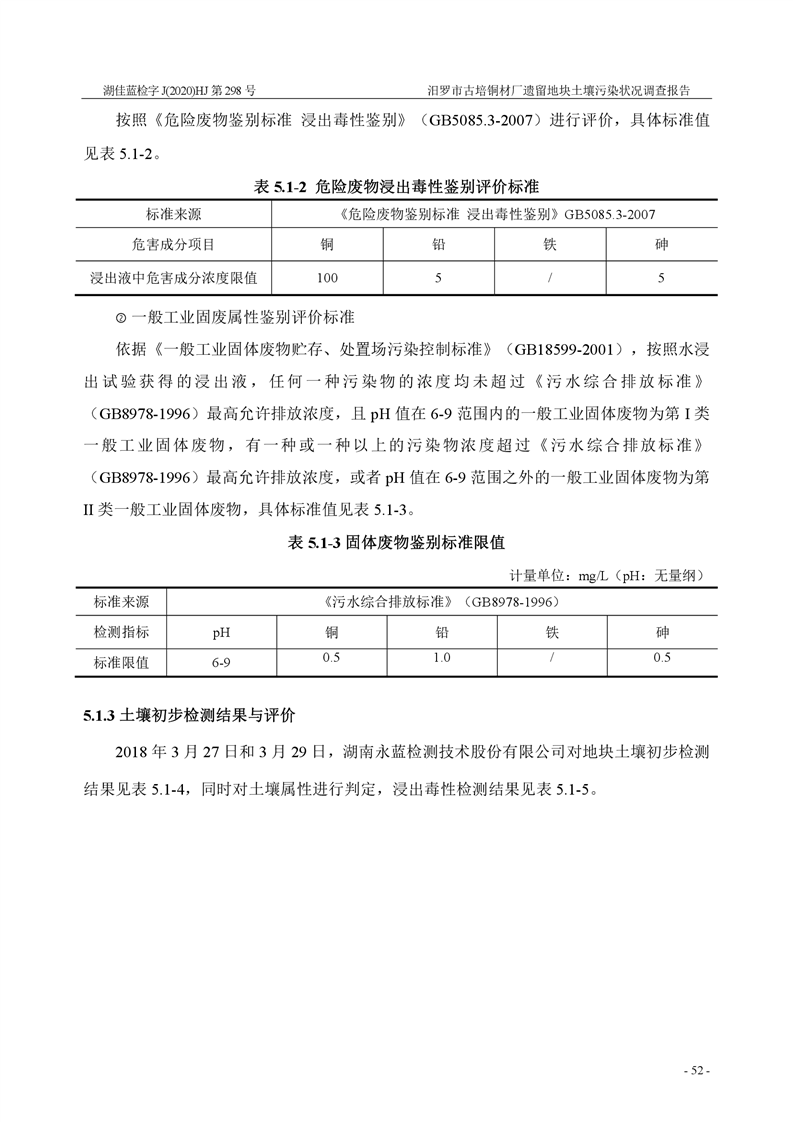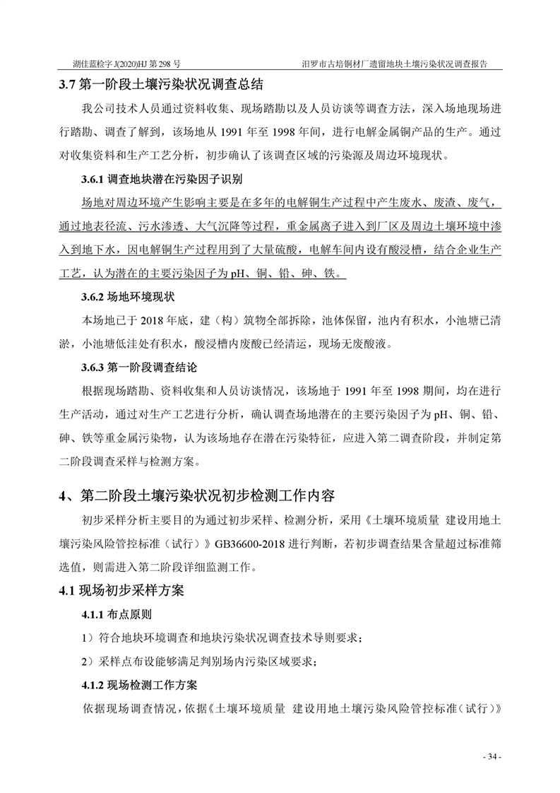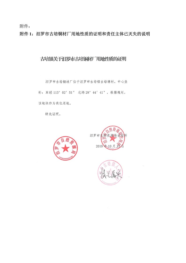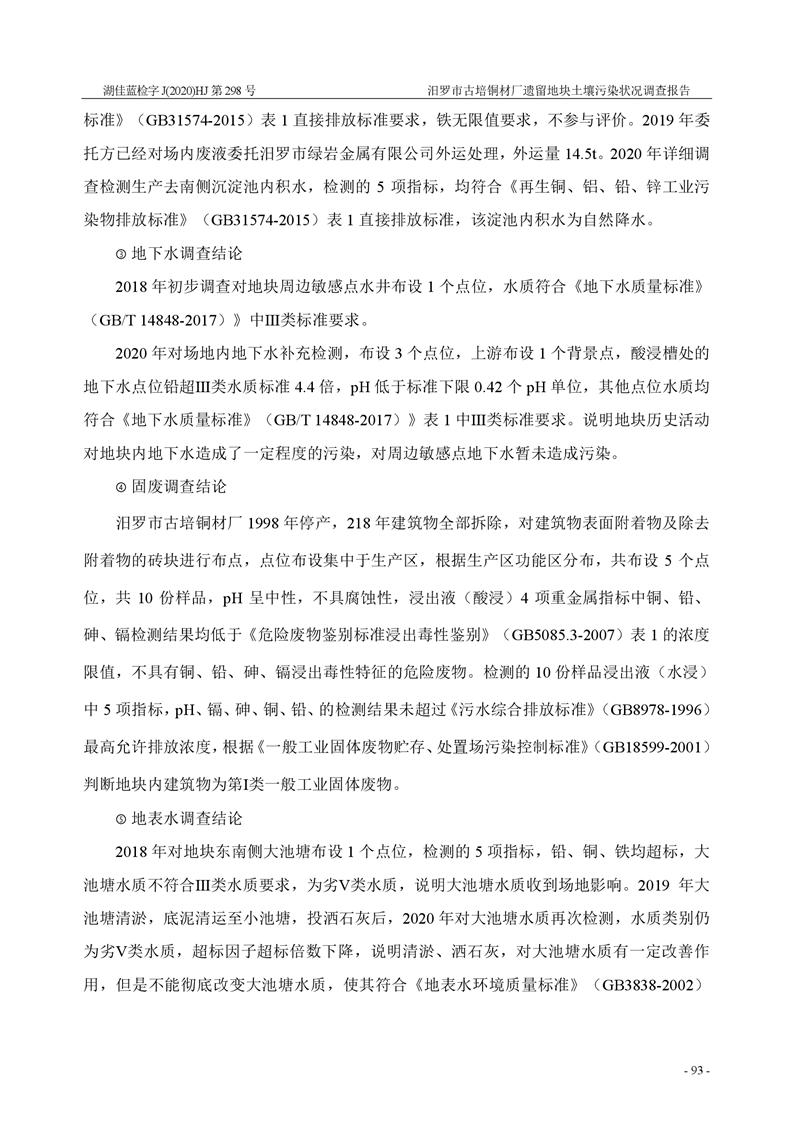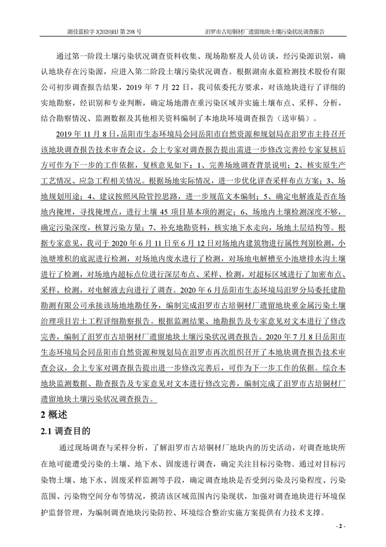 汨罗市古培铜材厂遗留地块土壤污染状况调查报告