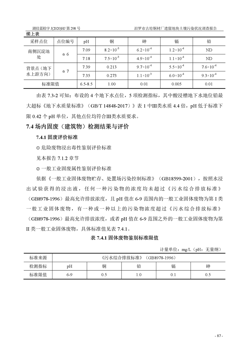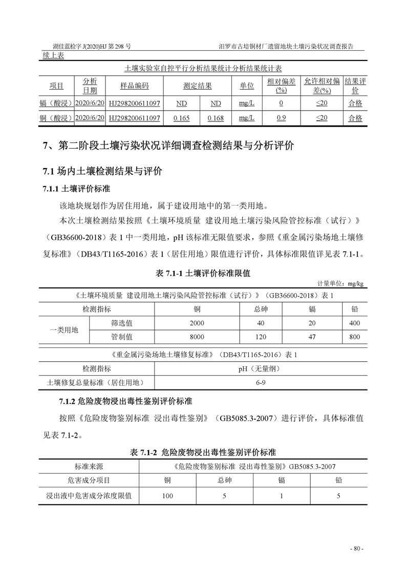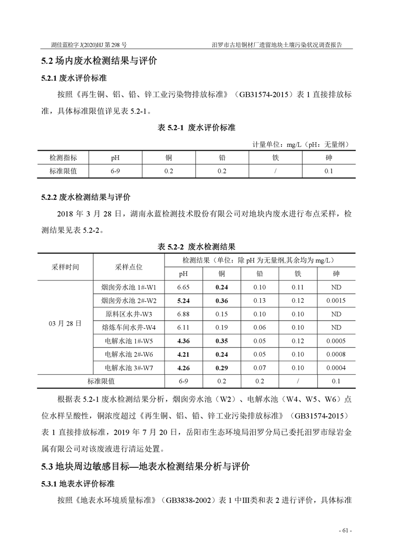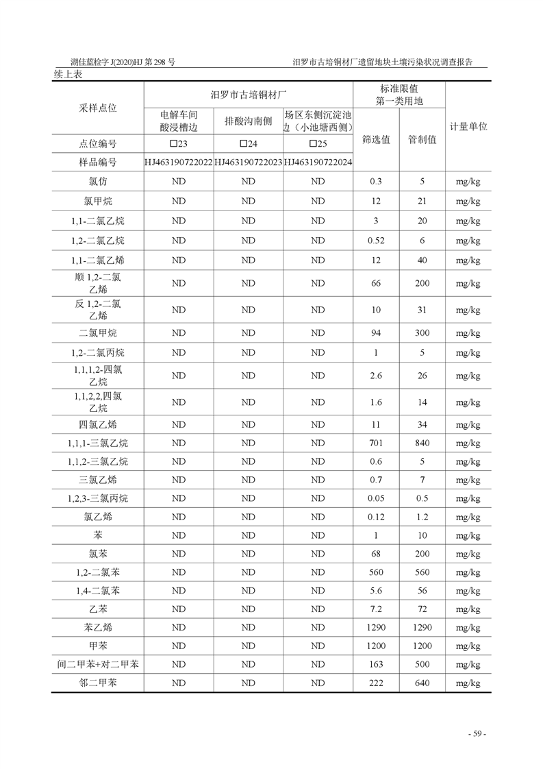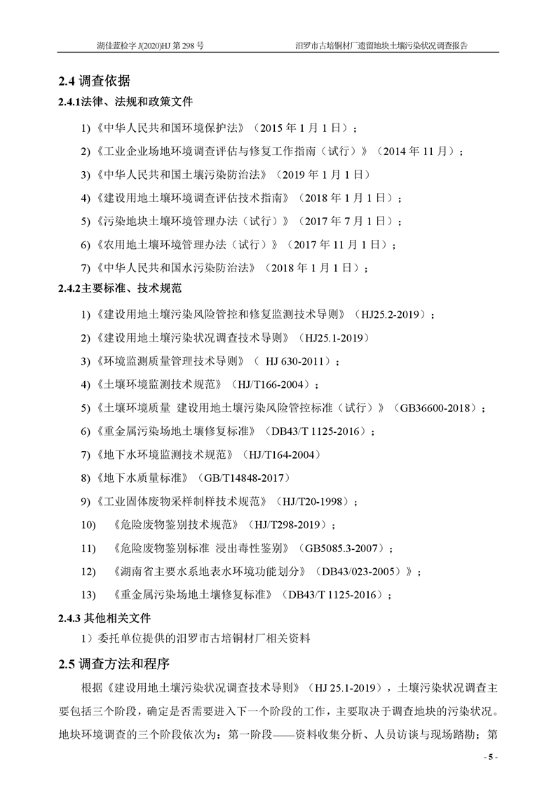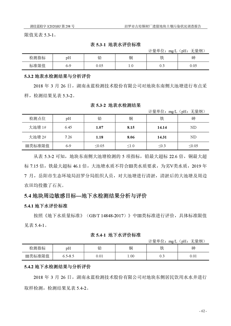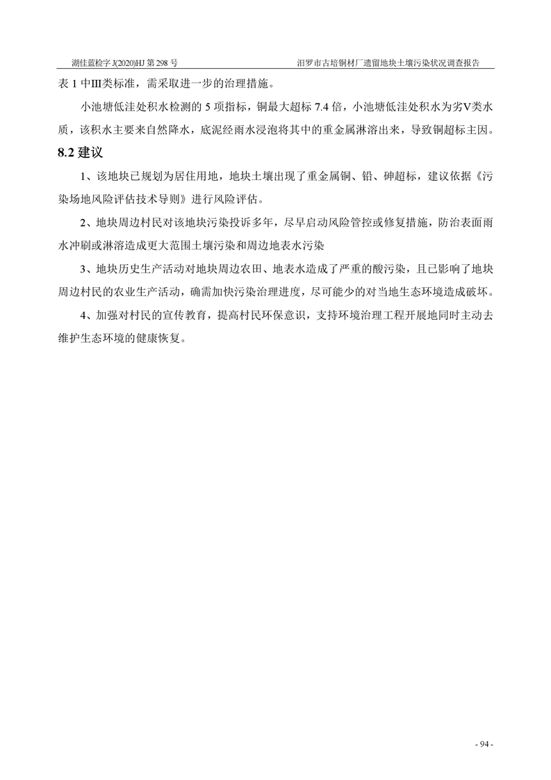 汨罗市古培铜材厂遗留地块土壤污染状况调查报告
