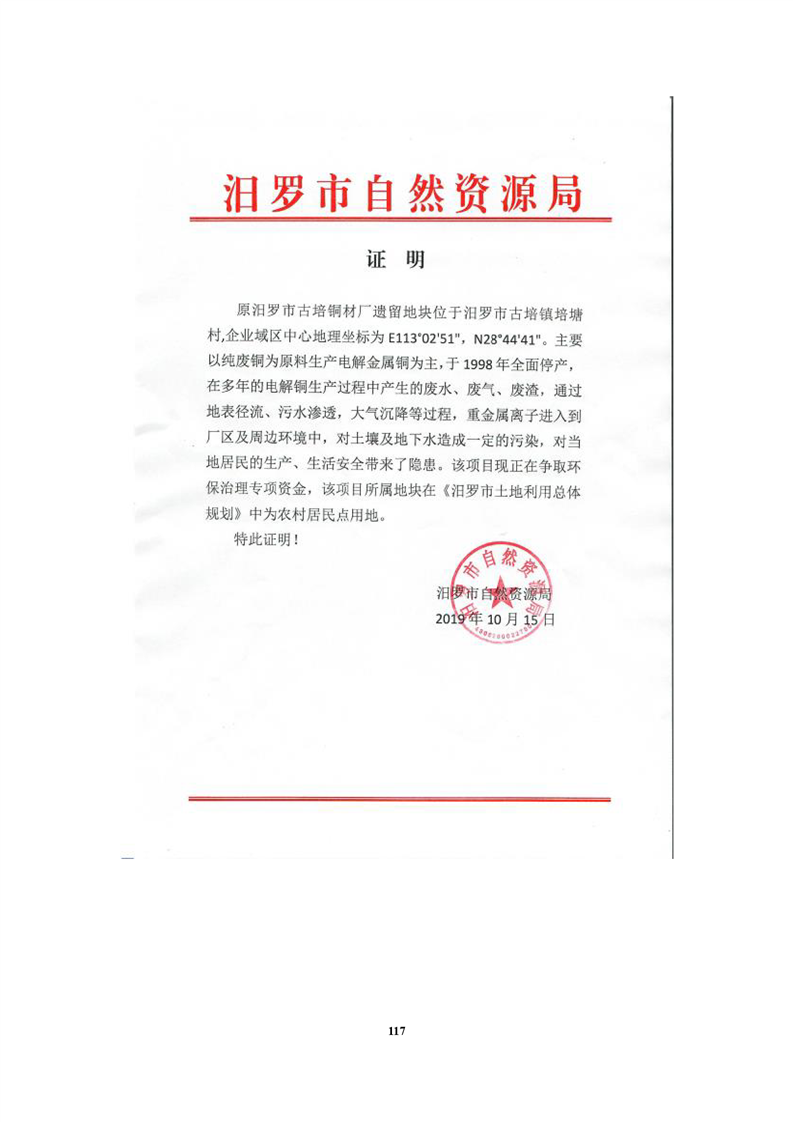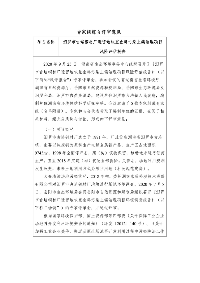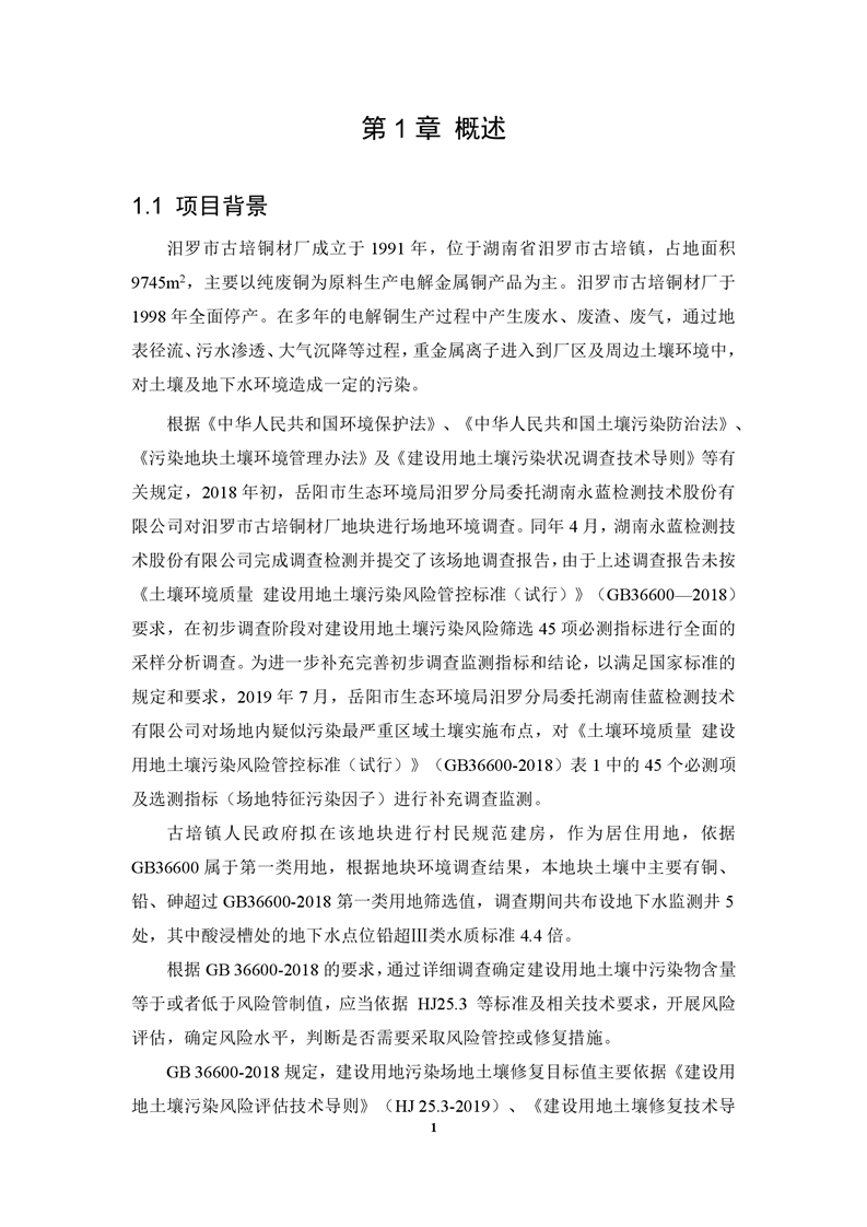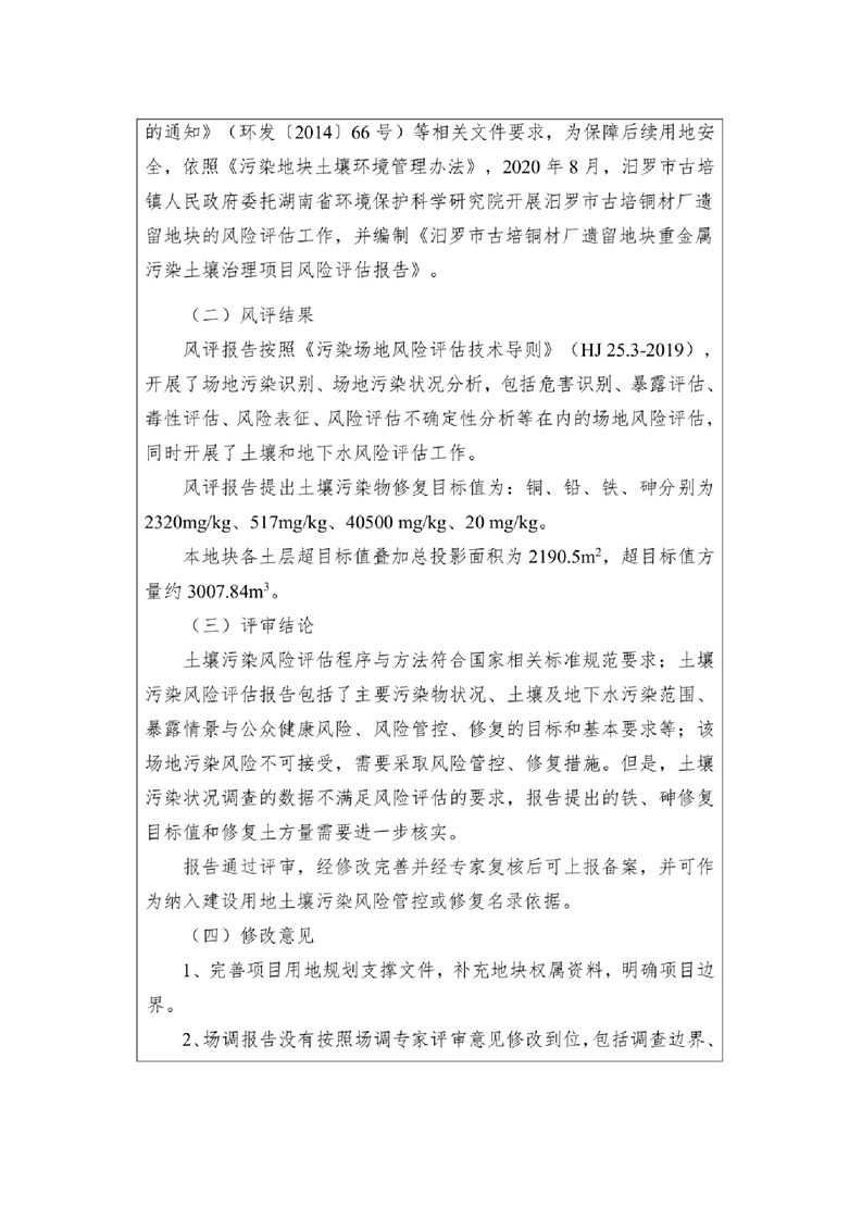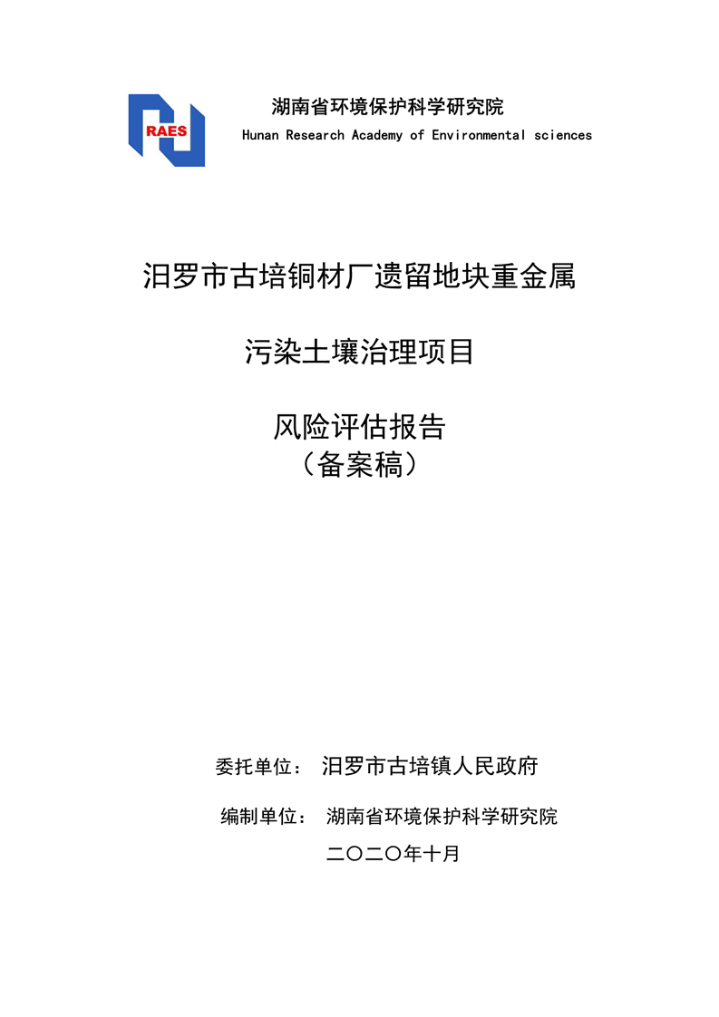 汨罗市古培铜材厂遗留地块重金属污染土壤治理项目风险评估报告(最终稿)