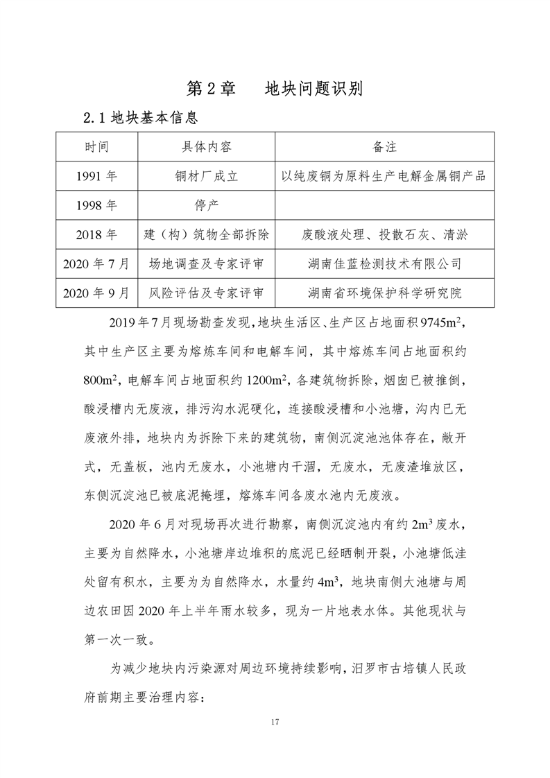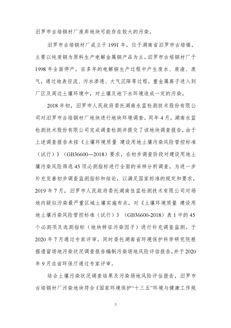 汨罗市原古培铜材厂土壤污染修复项目实施方案