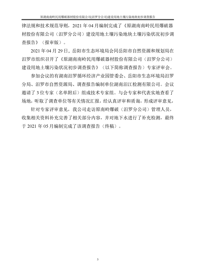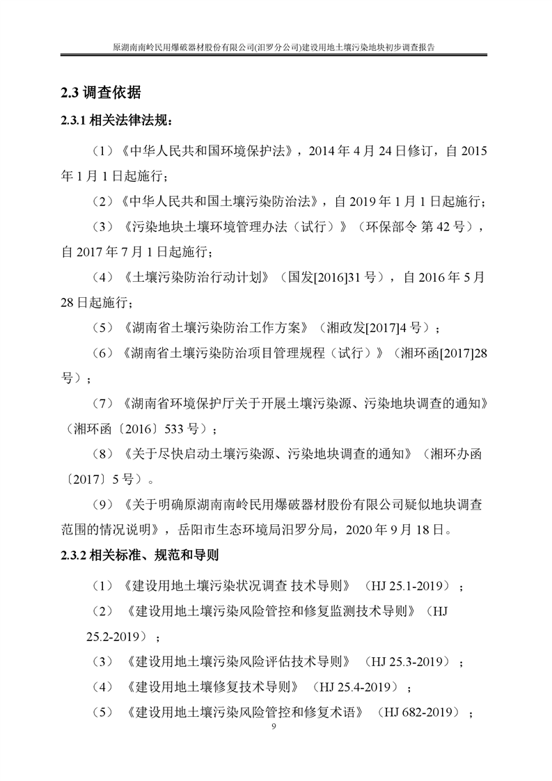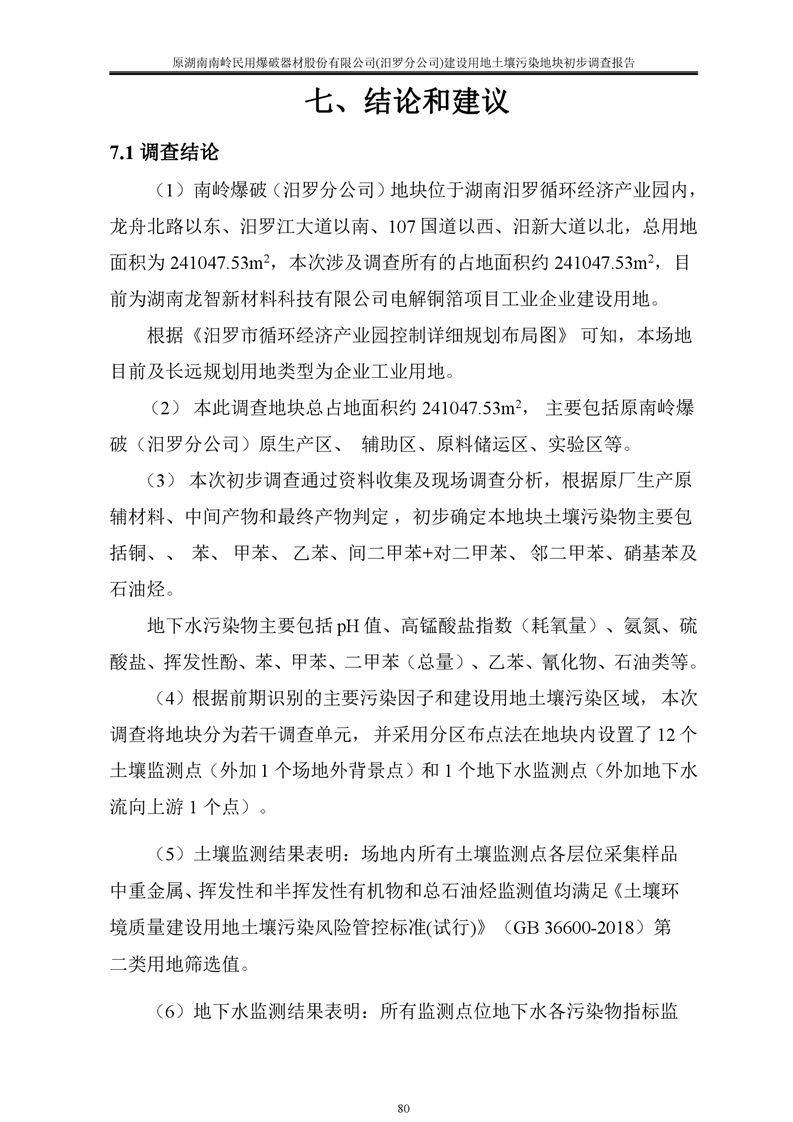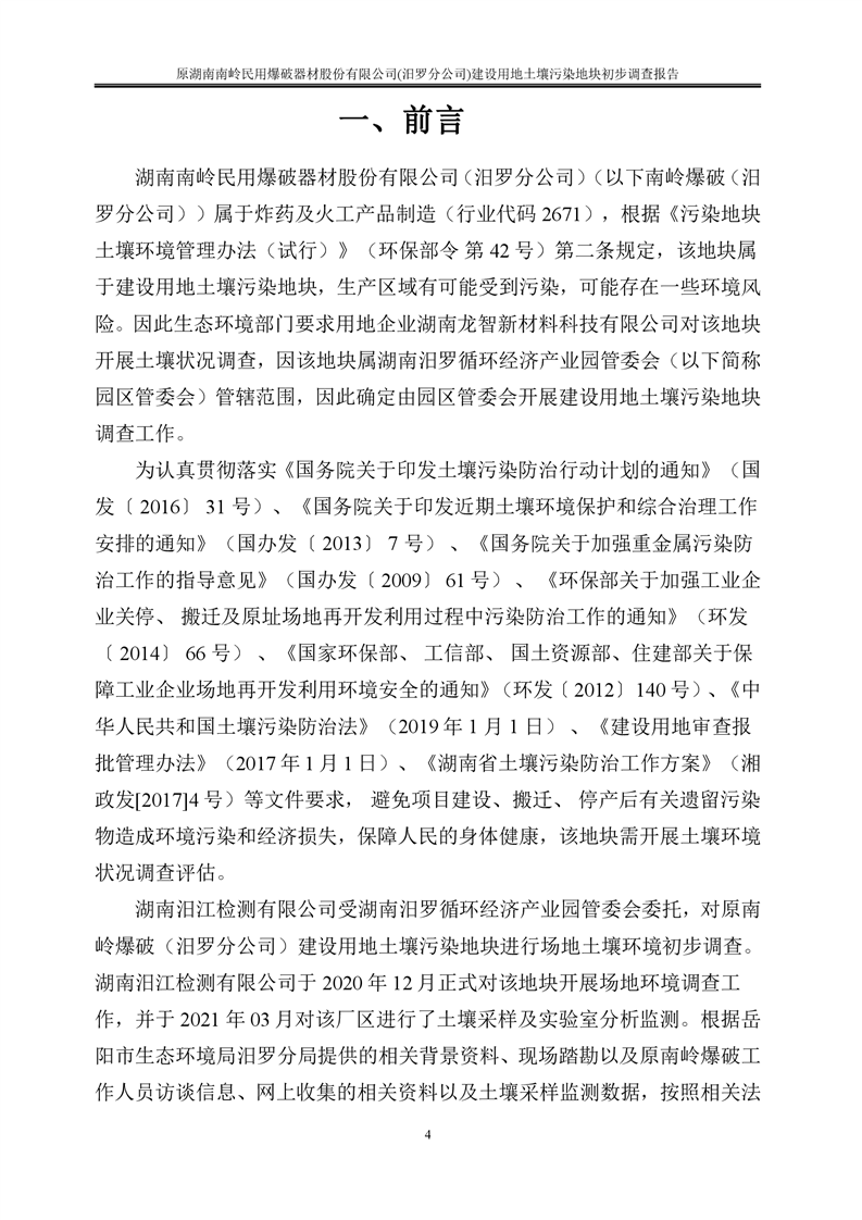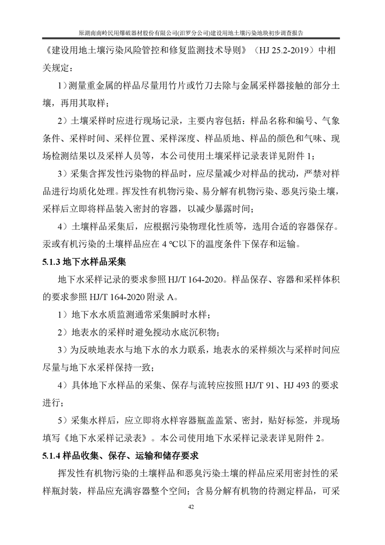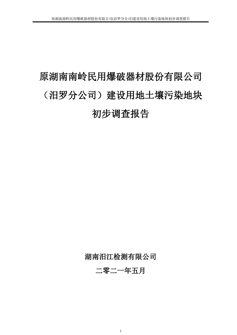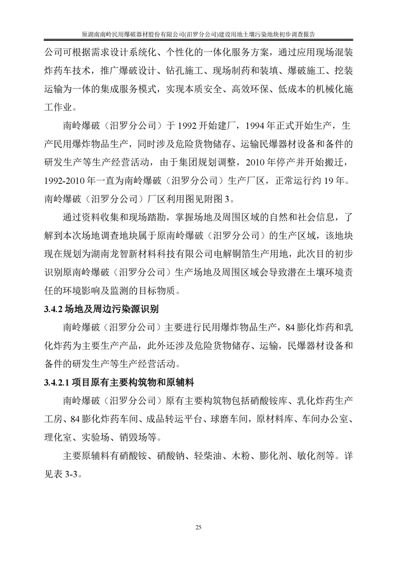 原湖南南岭民用爆破器材股份有限公司场地初步调查报告