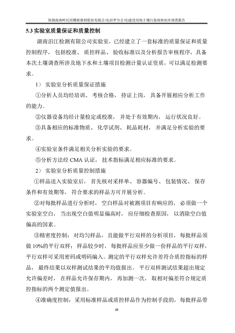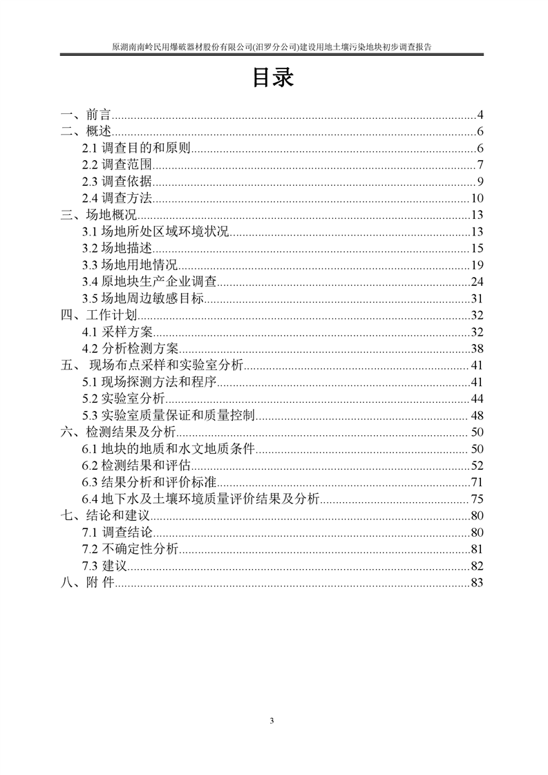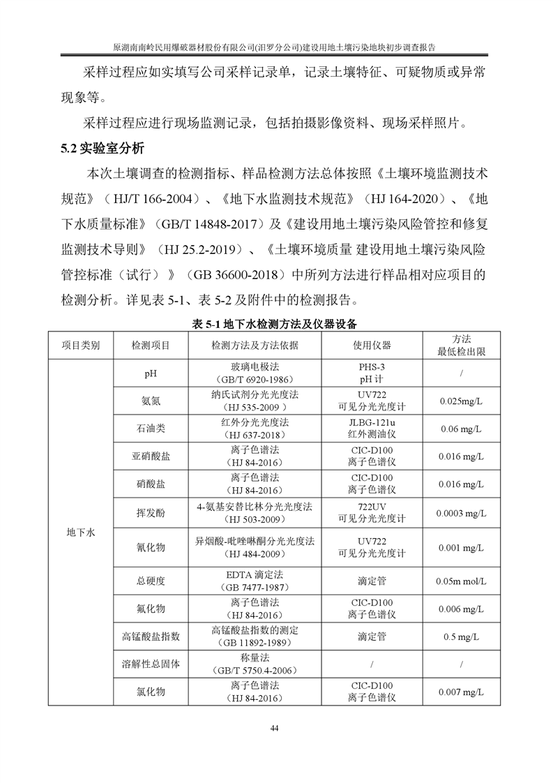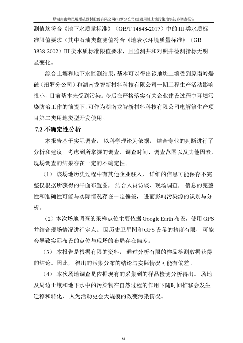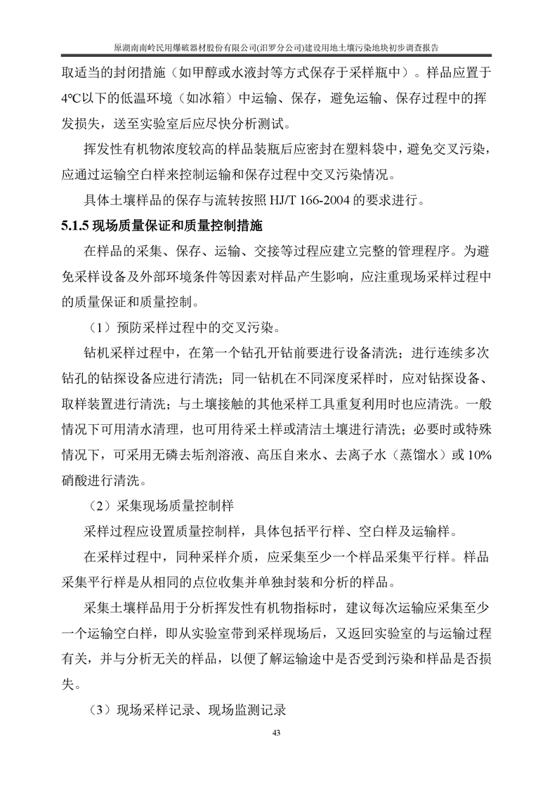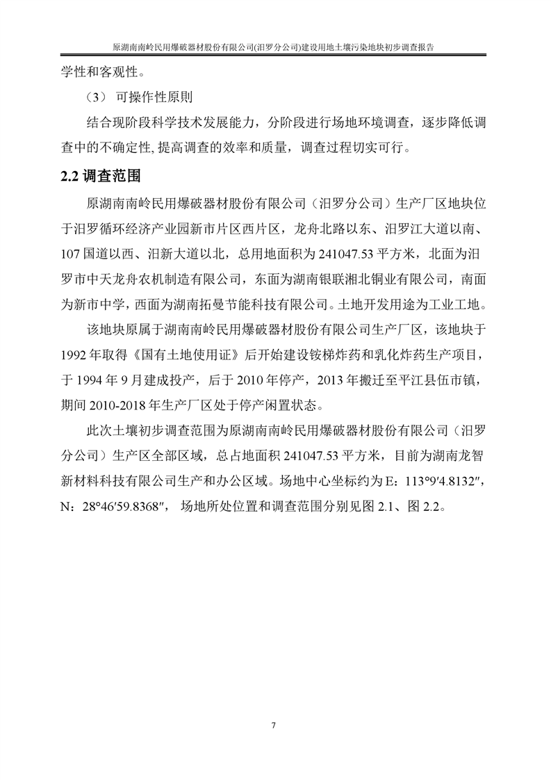 原湖南南岭民用爆破器材股份有限公司场地初步调查报告