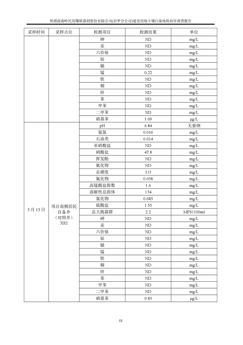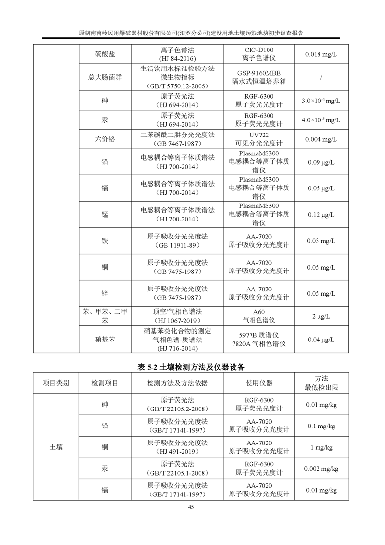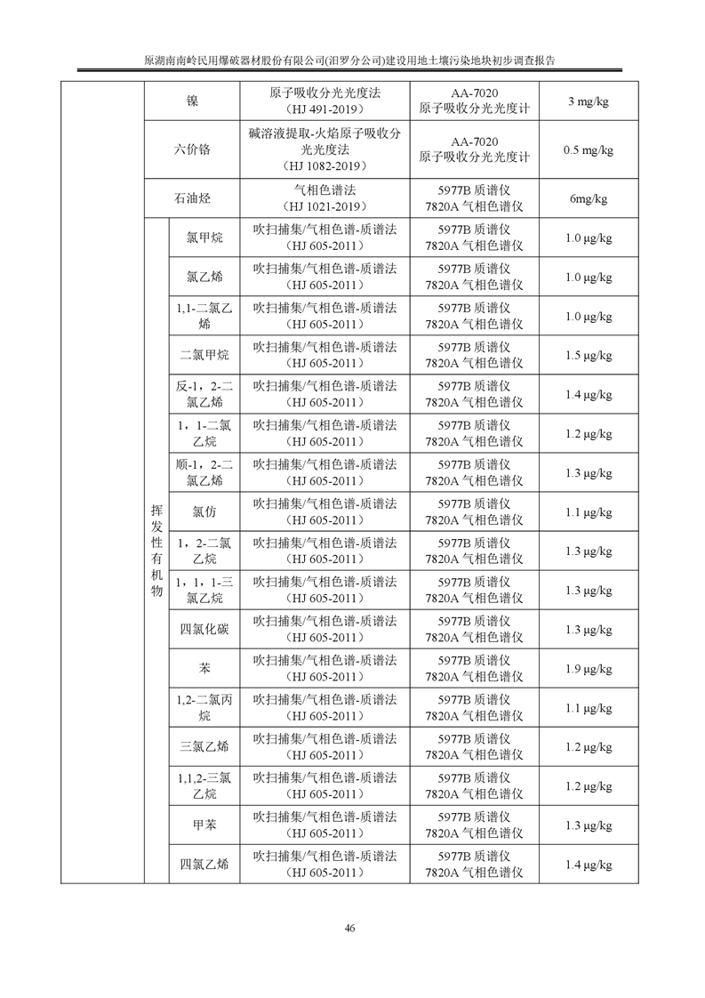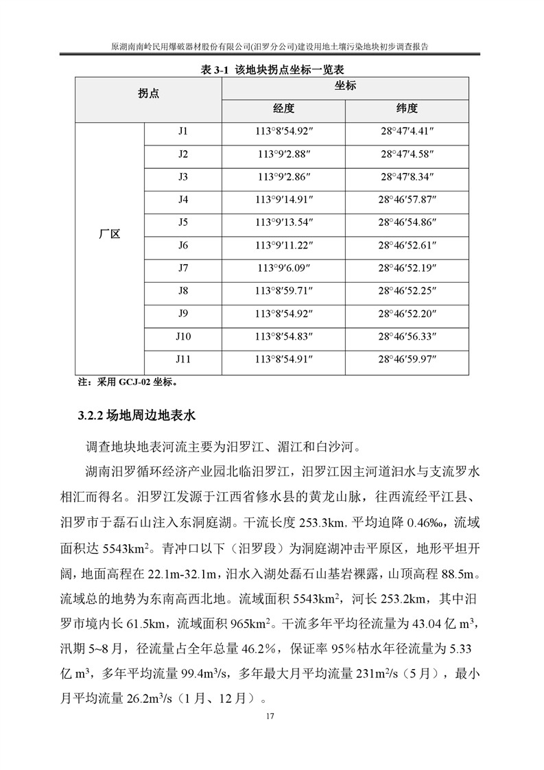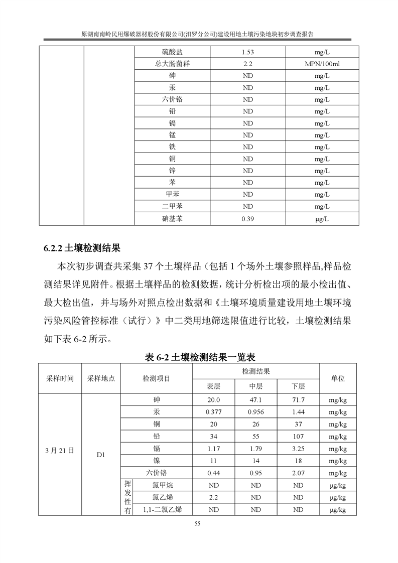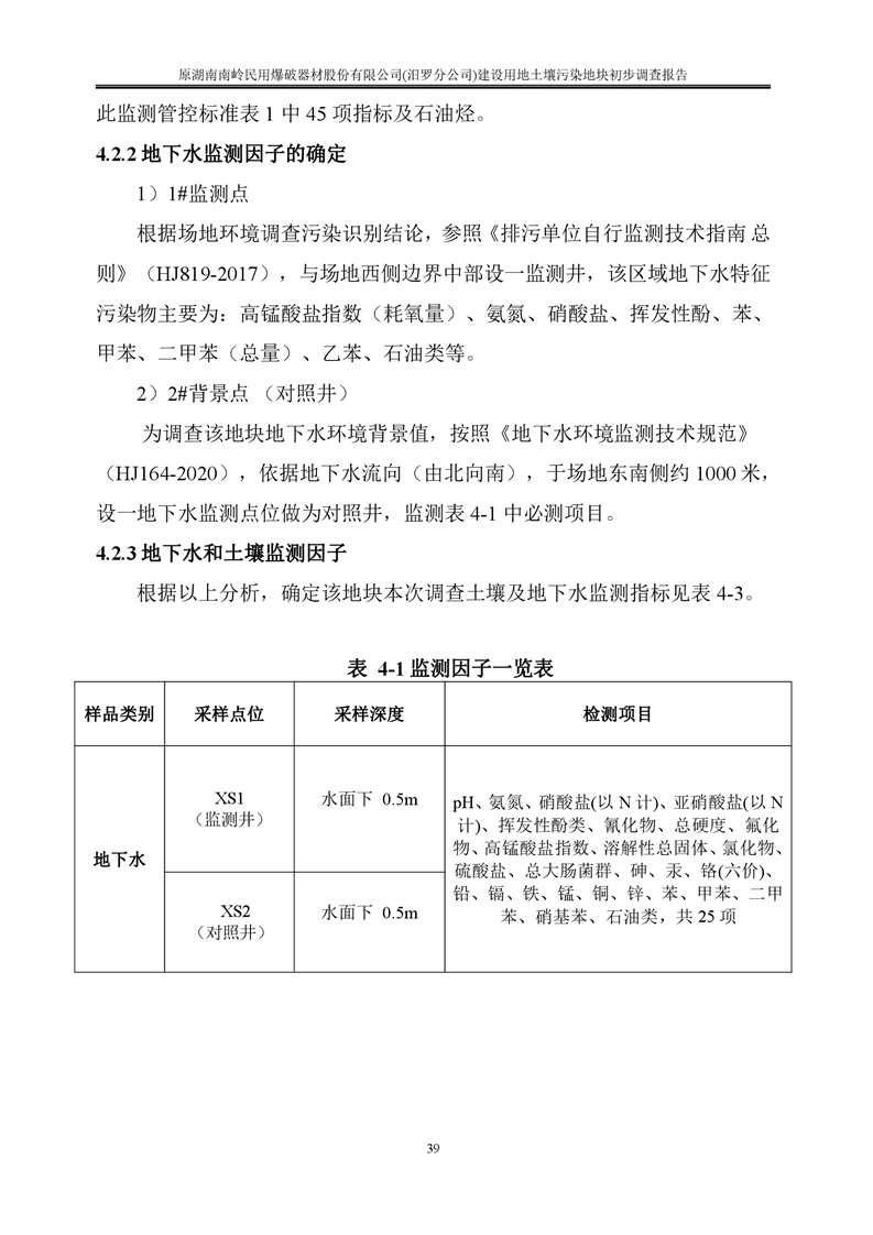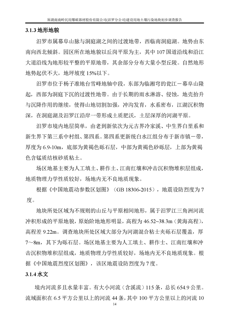 原湖南南岭民用爆破器材股份有限公司场地初步调查报告