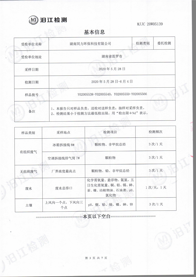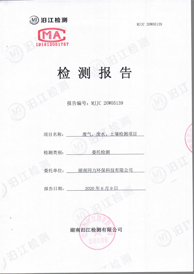 湖南同力环保科技有限公司土壤检测报告