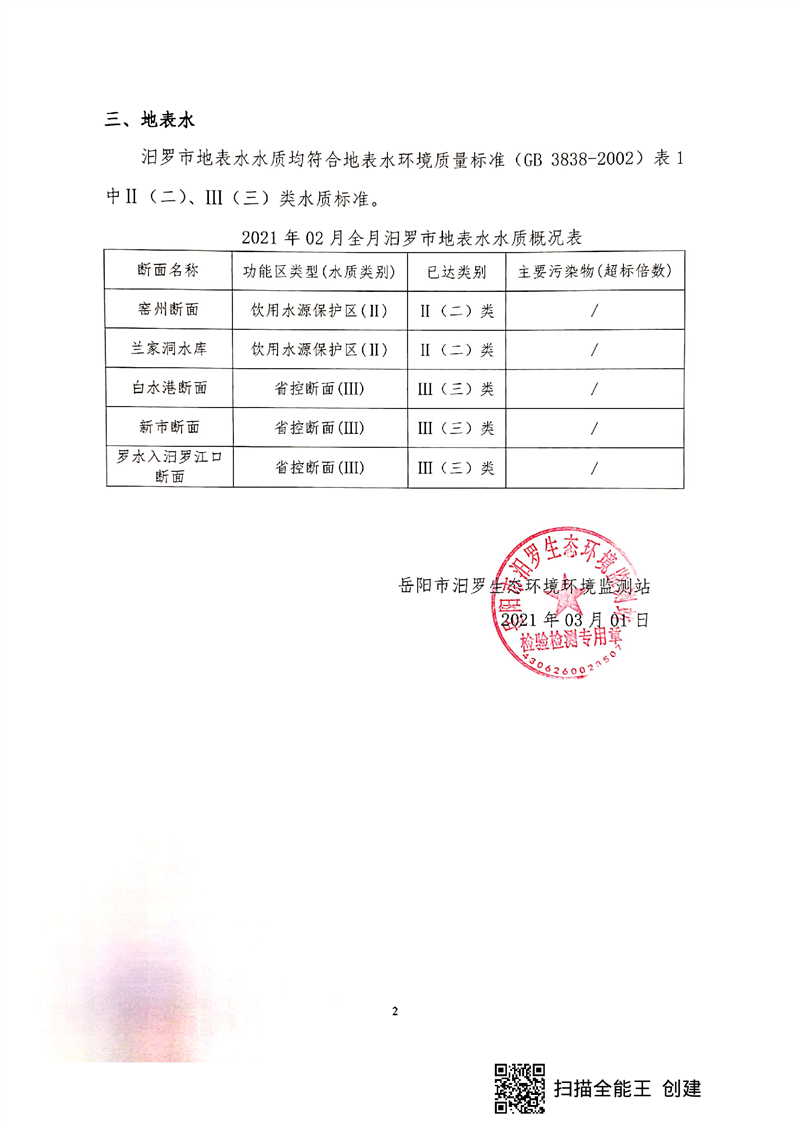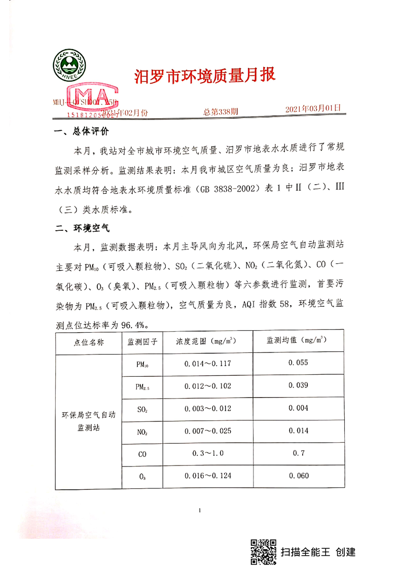 汨罗市环境质量月报(2021年2月)