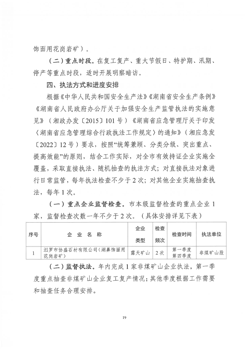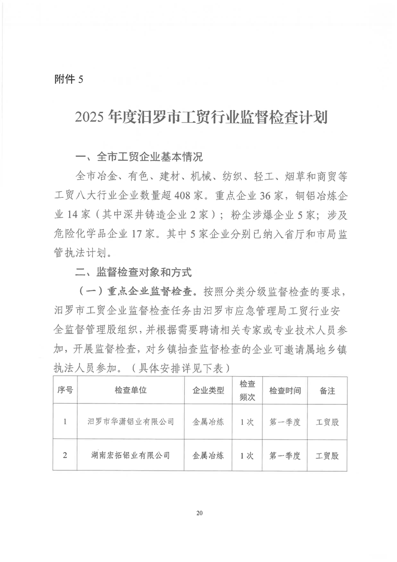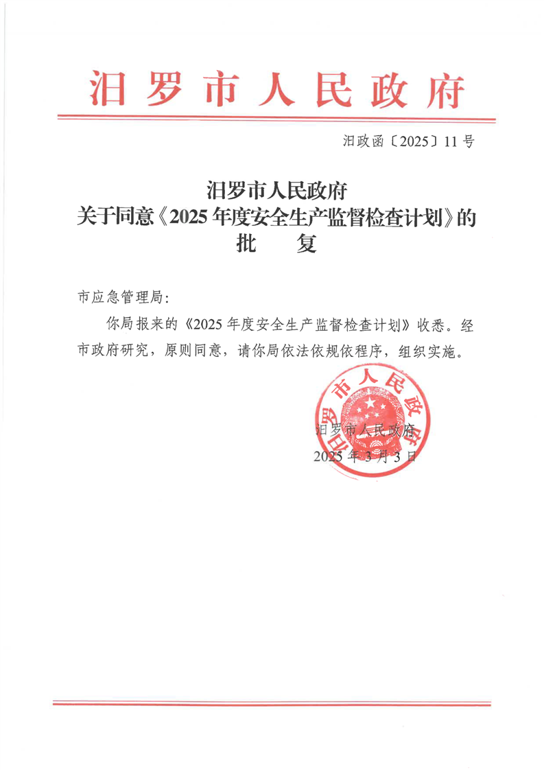 汨罗市应急管理局2025年度安全生产监督检查计划