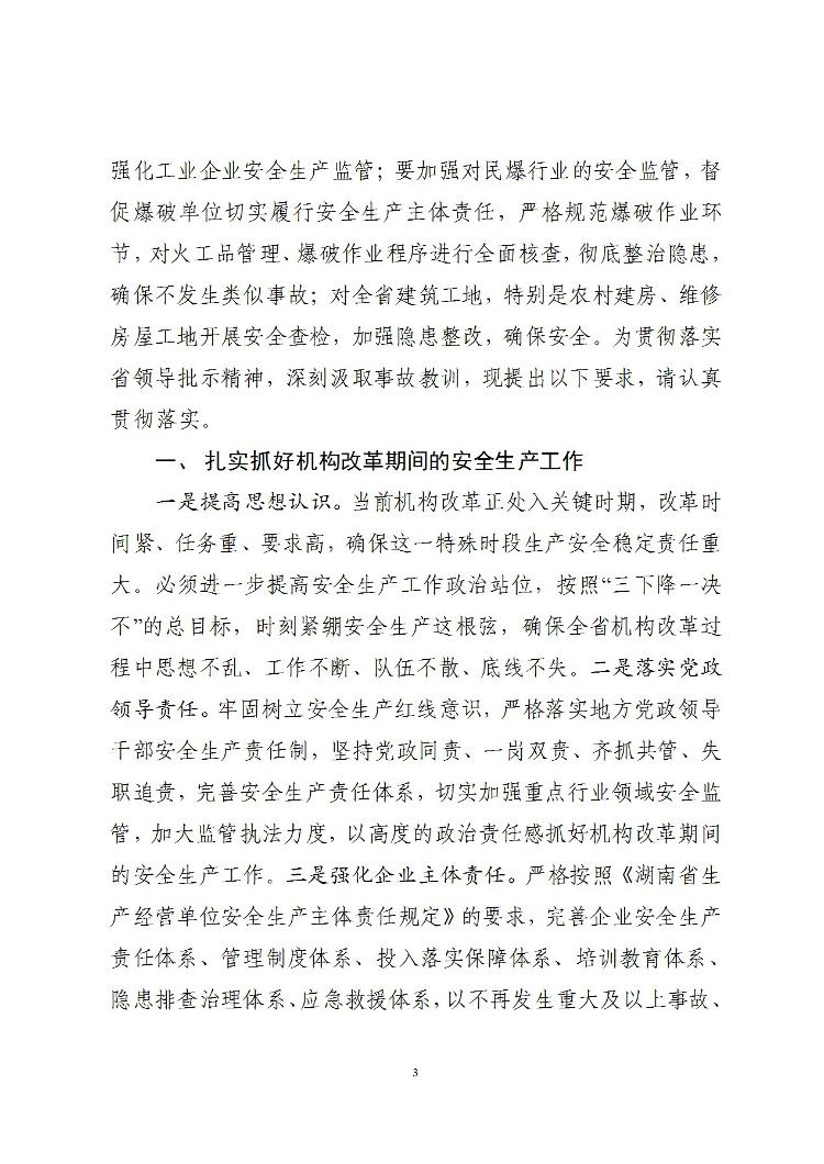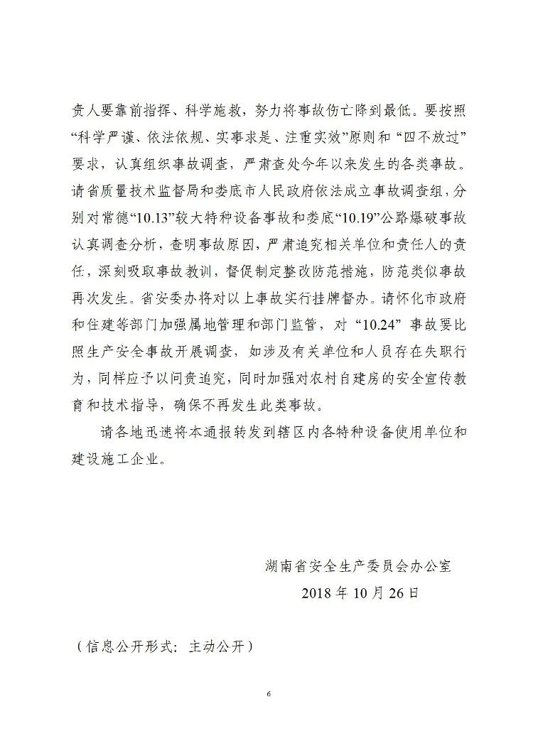 转发湖南省安全生产委员会办公室关于