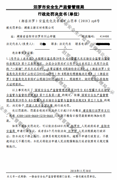 行政处罚决定书(当事人:湖南立新石材有限公司)