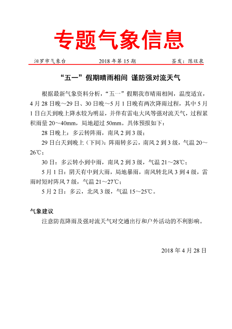 专题气象信息2018年第15期