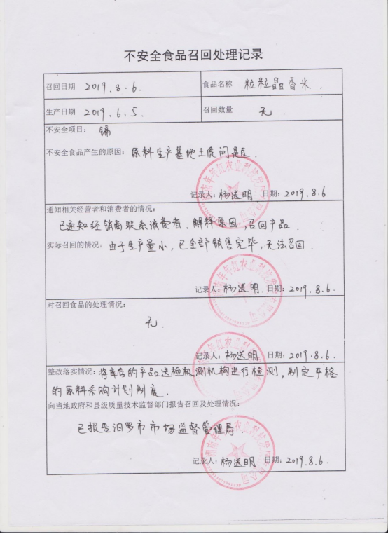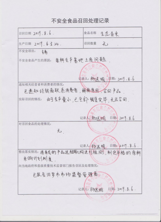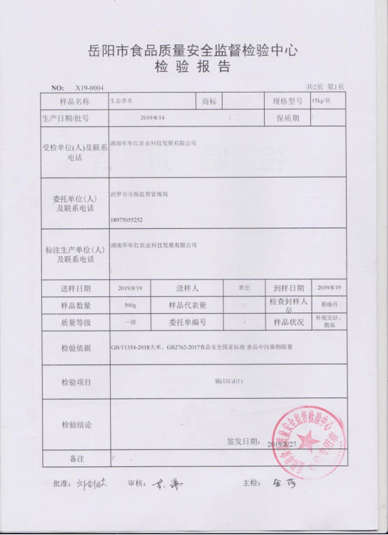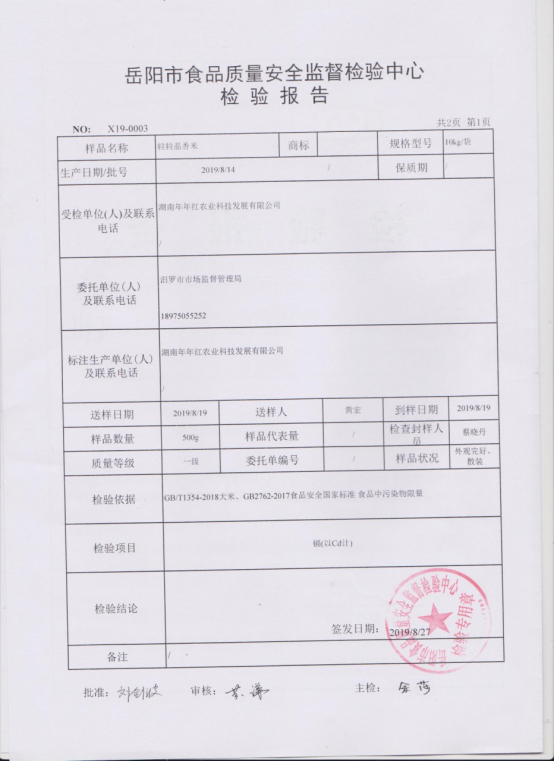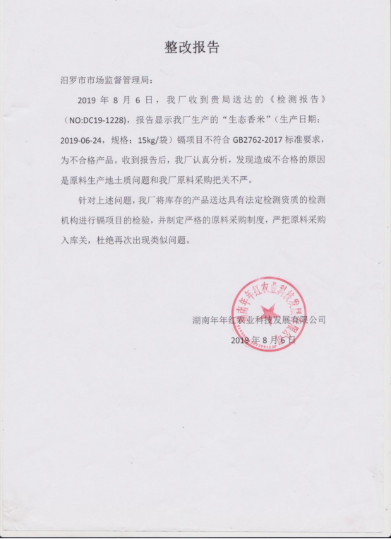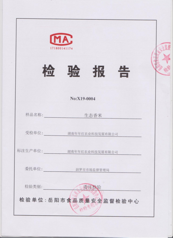 对湖南年年红农业科技发展有限公司不合格的产品公示