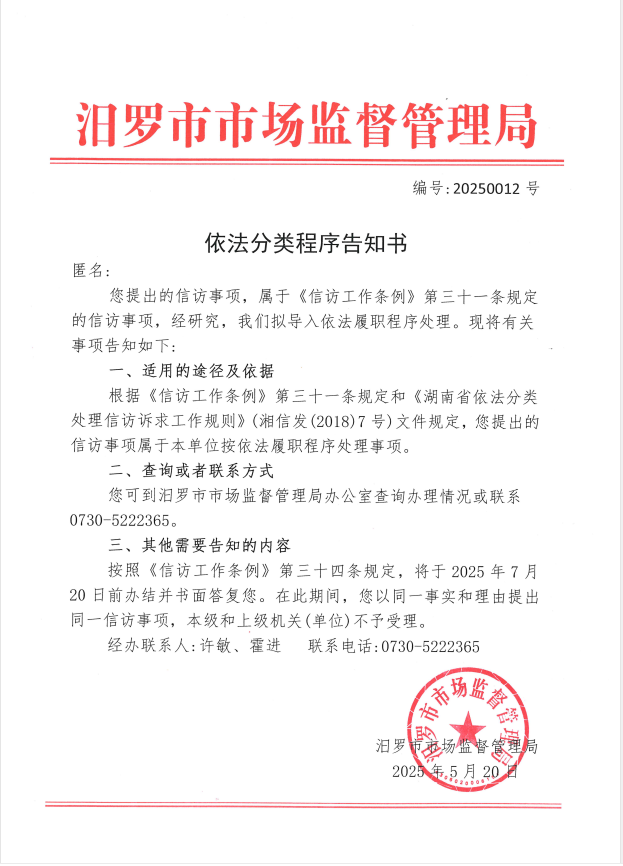 依法分类程序告知书(编号:20250012、20250013)