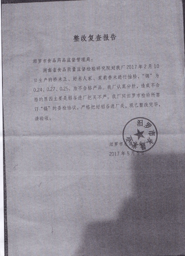 对汨罗市永晟米业不合格的产品公示